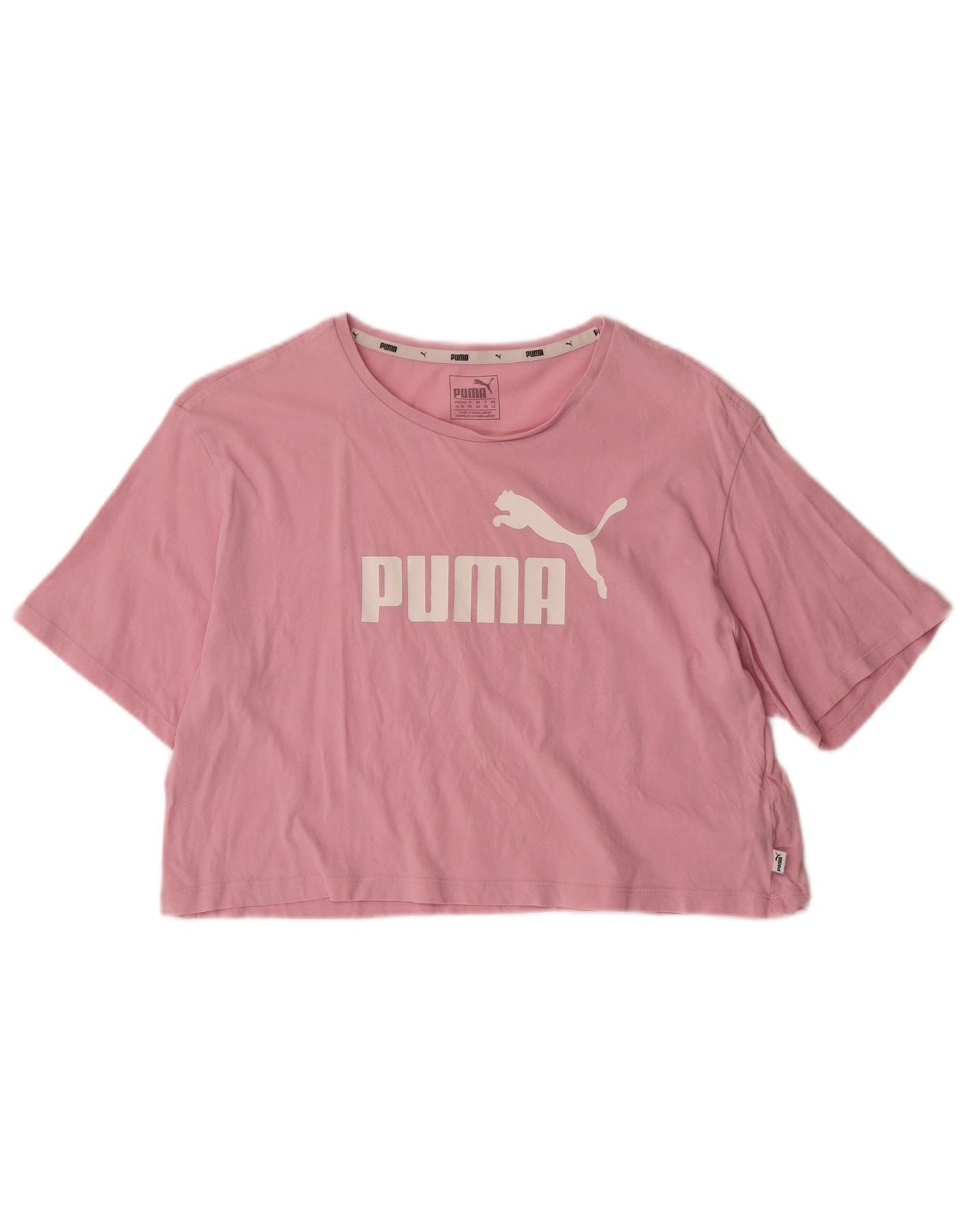 PUMA Womens Crop Graphic T-Shirt Top UK 14 Medium Pink Cotton