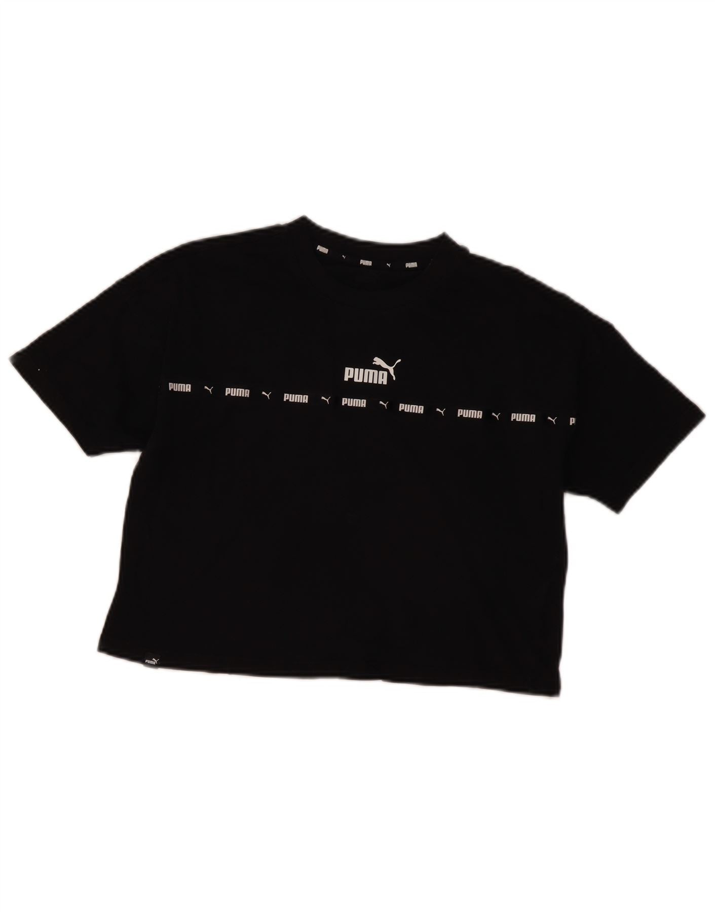 PUMA Womens Crop Oversized Graphic T-Shirt Top UK 10 Small Black Cotton