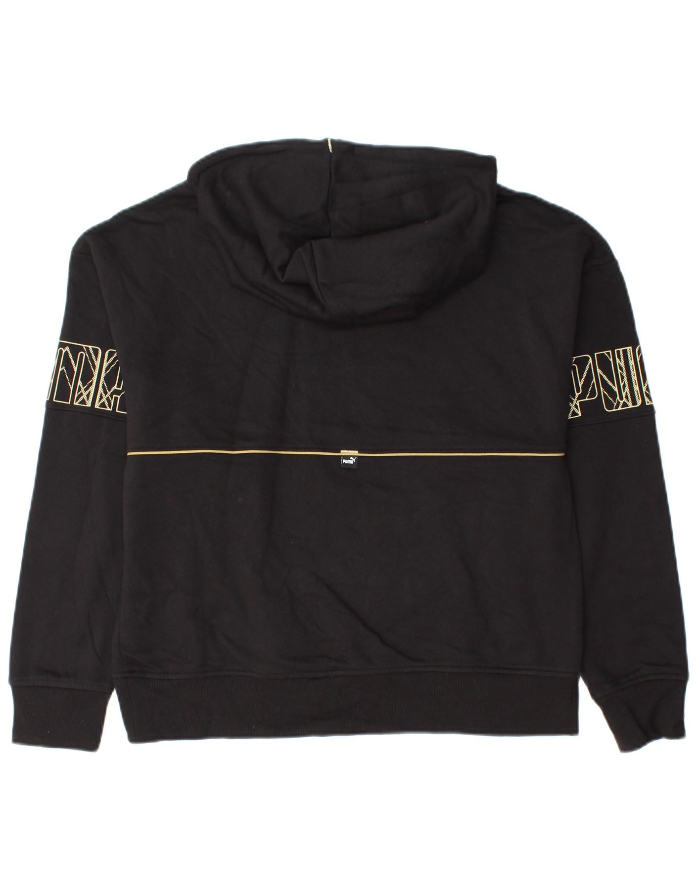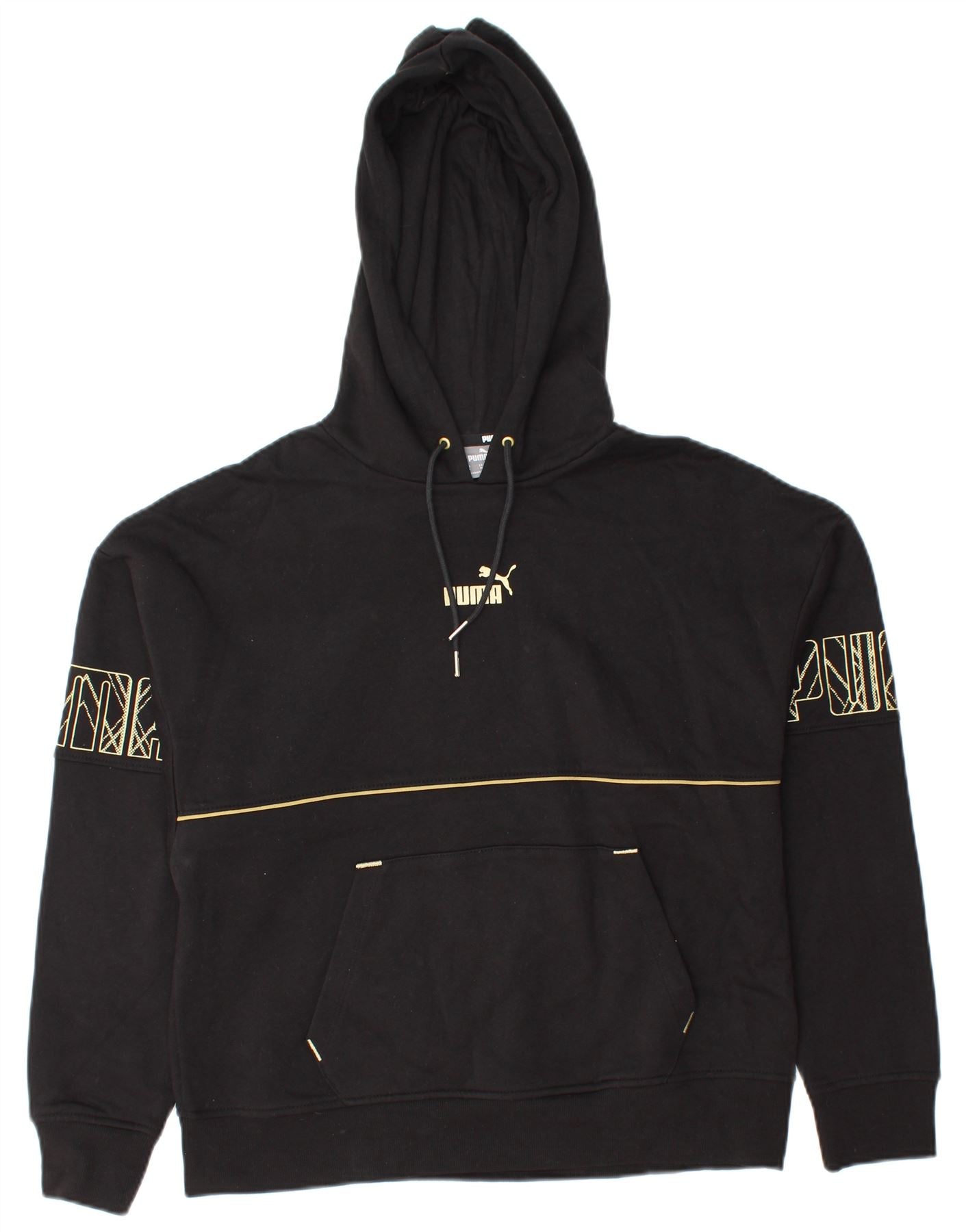 PUMA Womens Graphic Hoodie Jumper UK 14 Medium Black Cotton