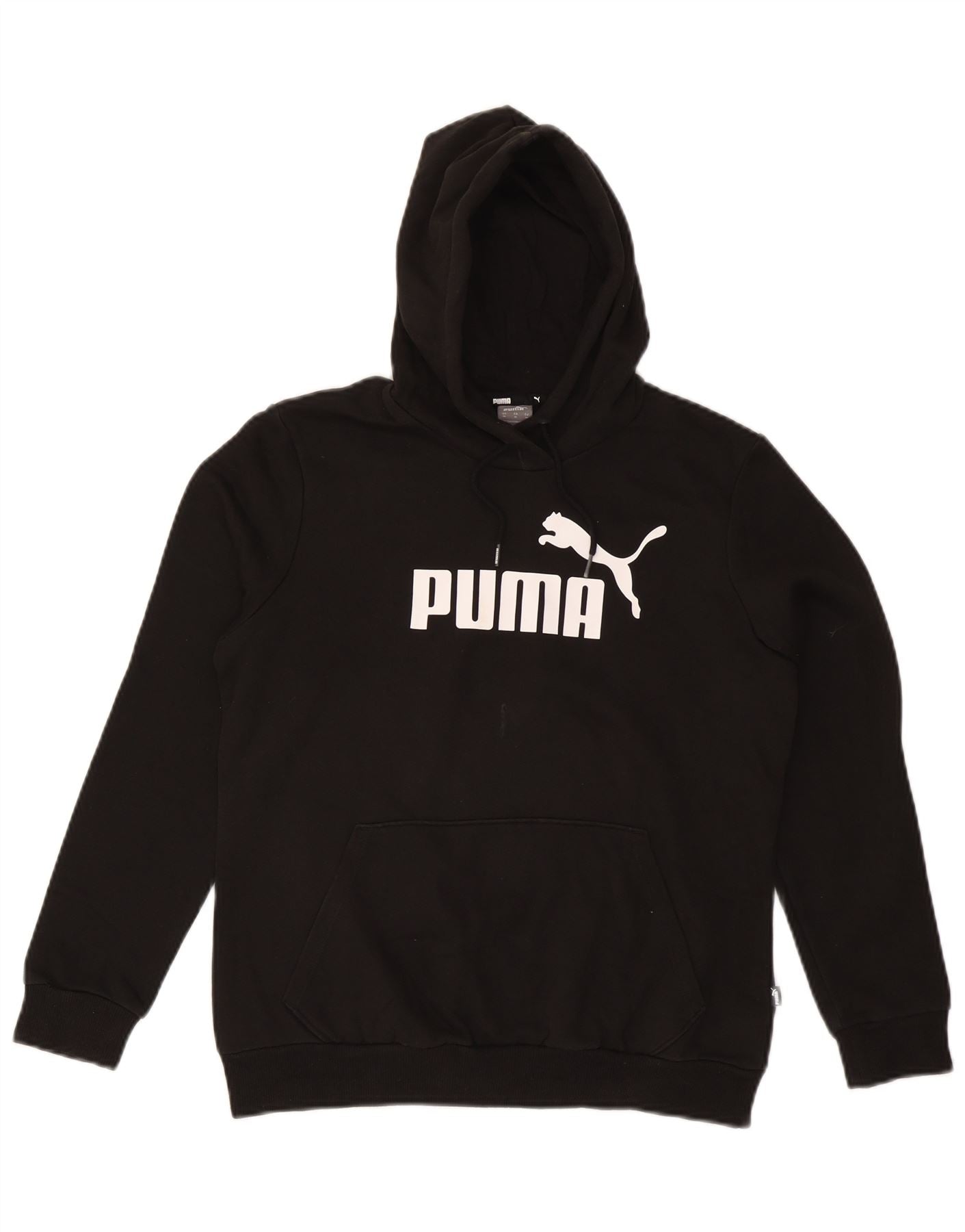 PUMA Womens Graphic Hoodie Jumper UK 14 Medium Black Cotton