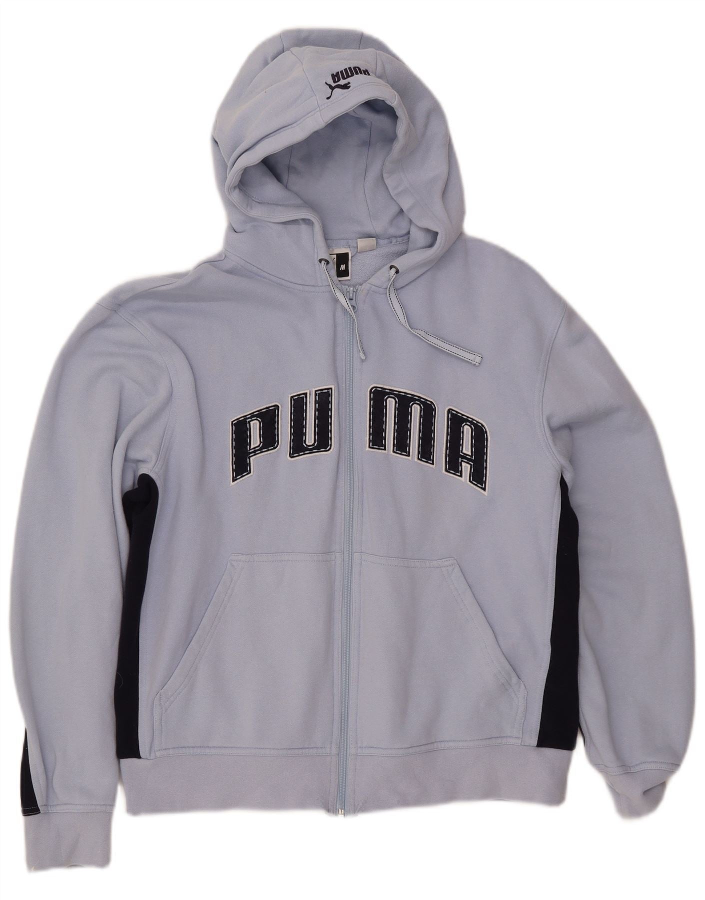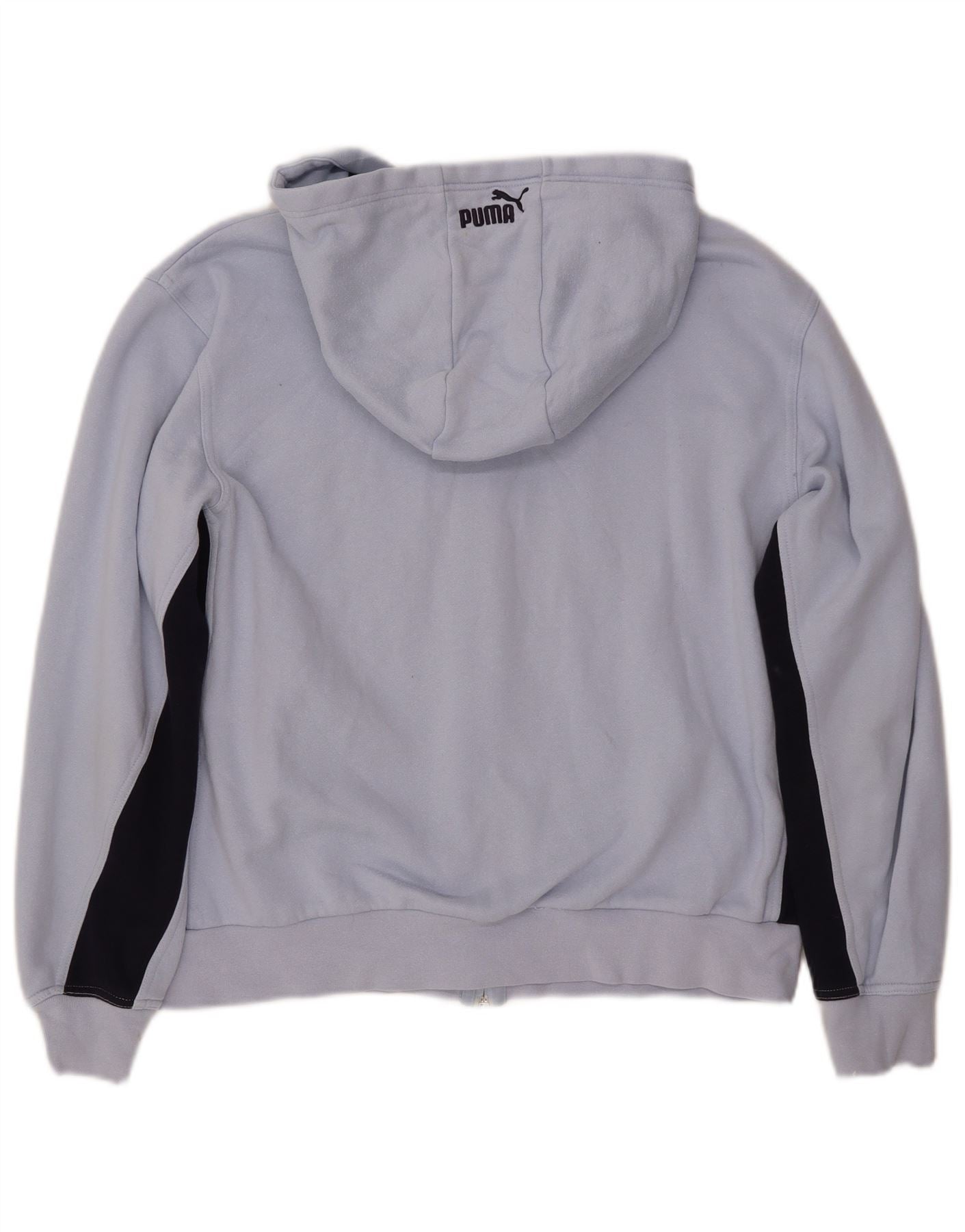 PUMA Womens Graphic Hoodie Jumper UK 14 Medium Blue Colourblock Cotton