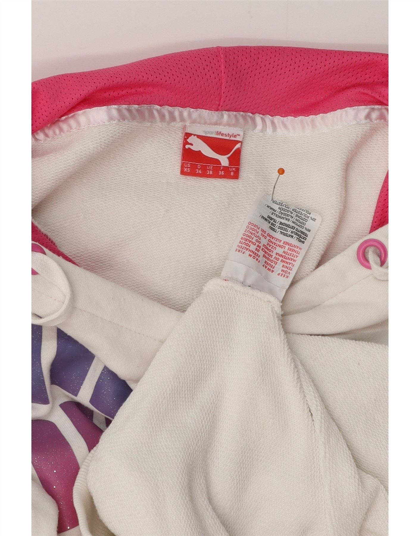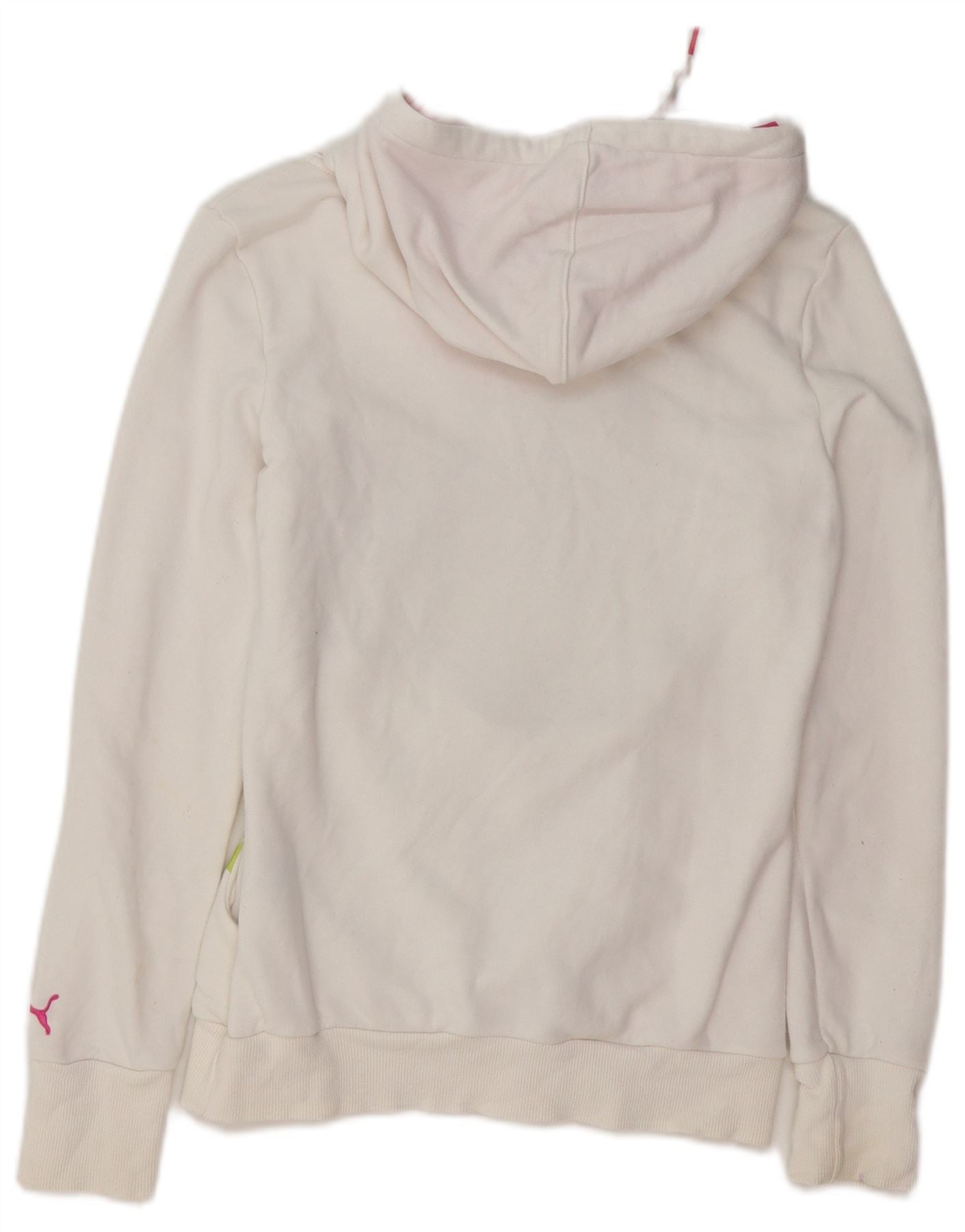 PUMA Womens Graphic Hoodie Jumper UK 8 Small White Cotton