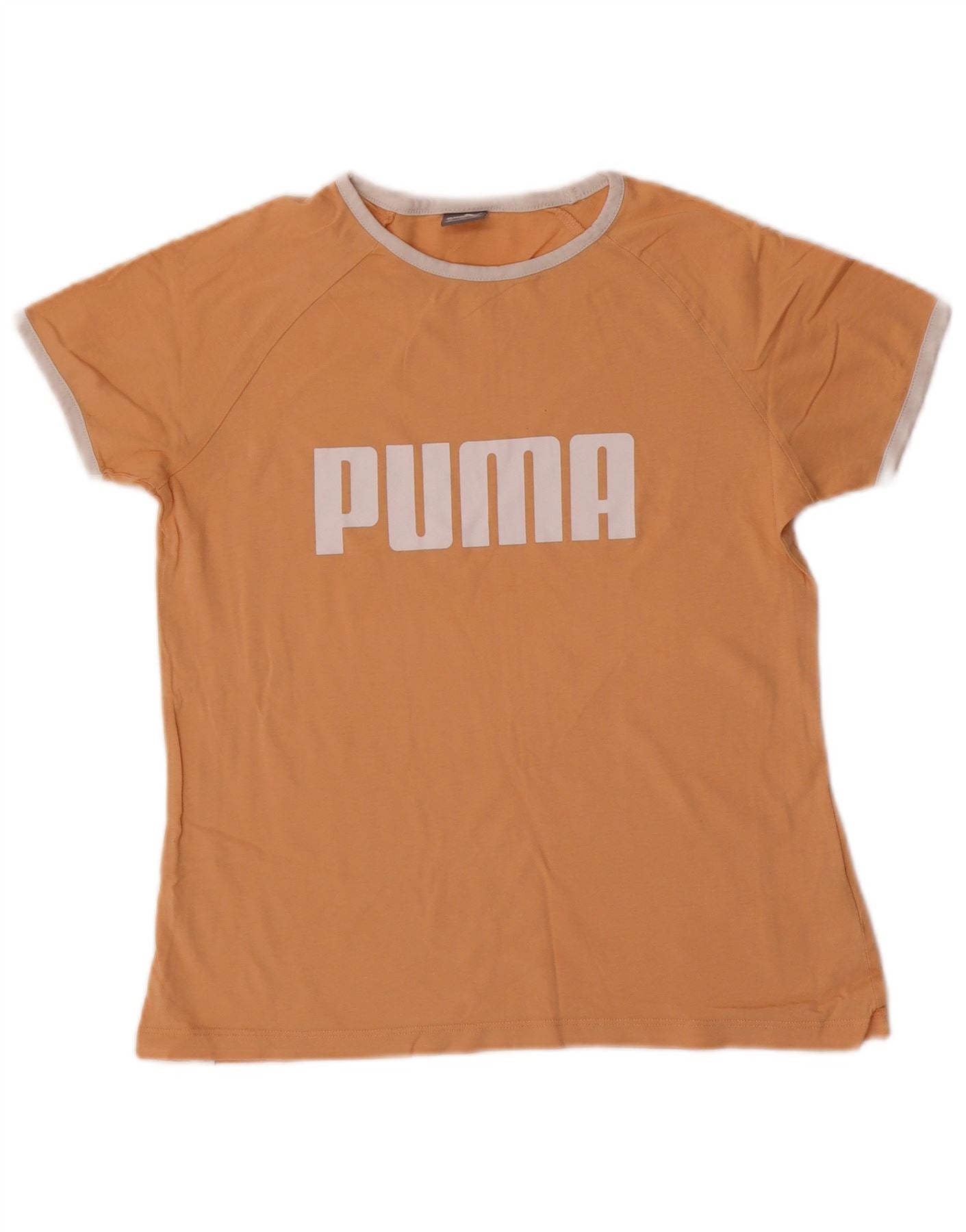 PUMA Womens Graphic T-Shirt Top UK 14 Medium Orange Colourblock Cotton