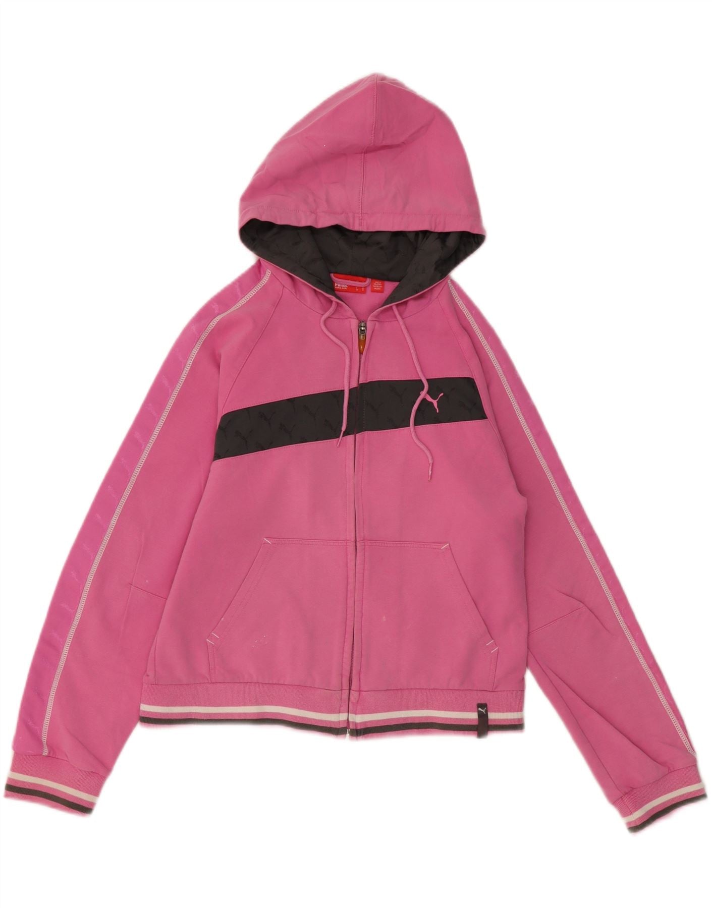 PUMA Womens Graphic Zip Hoodie Sweater UK 12 Medium Pink Colourblock