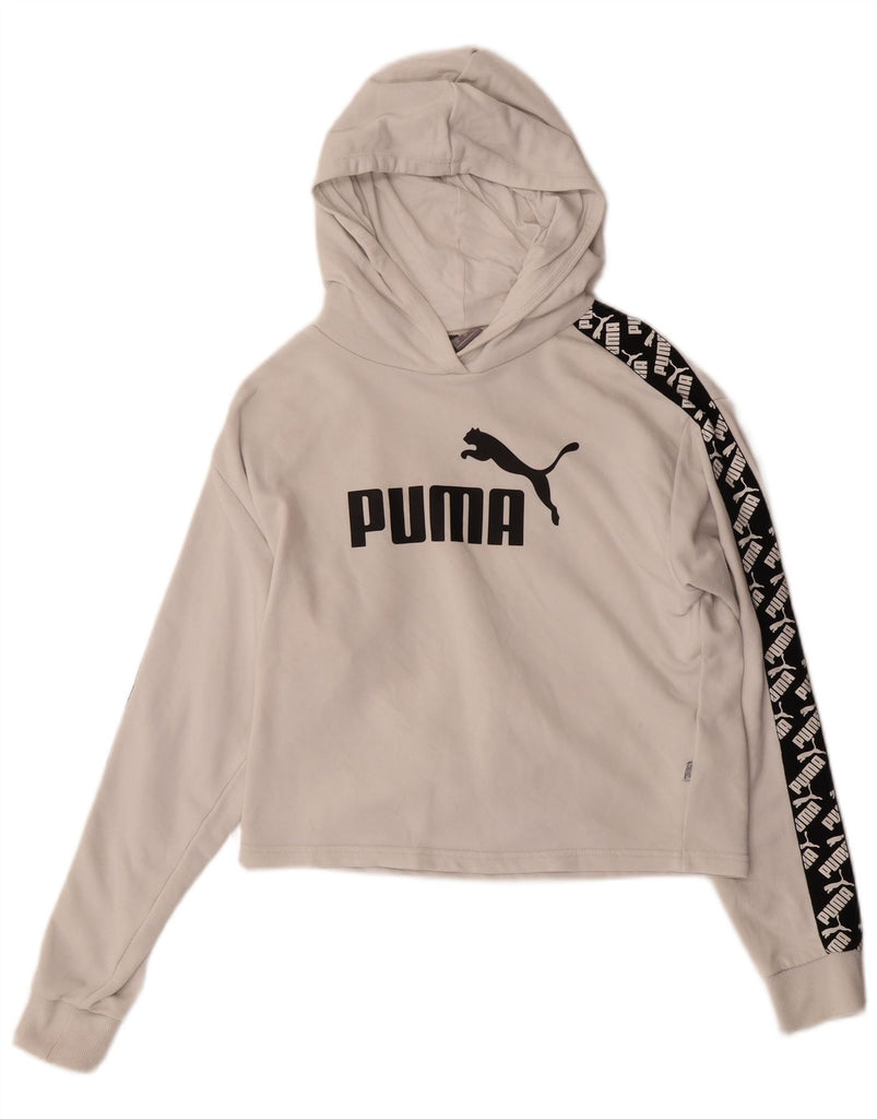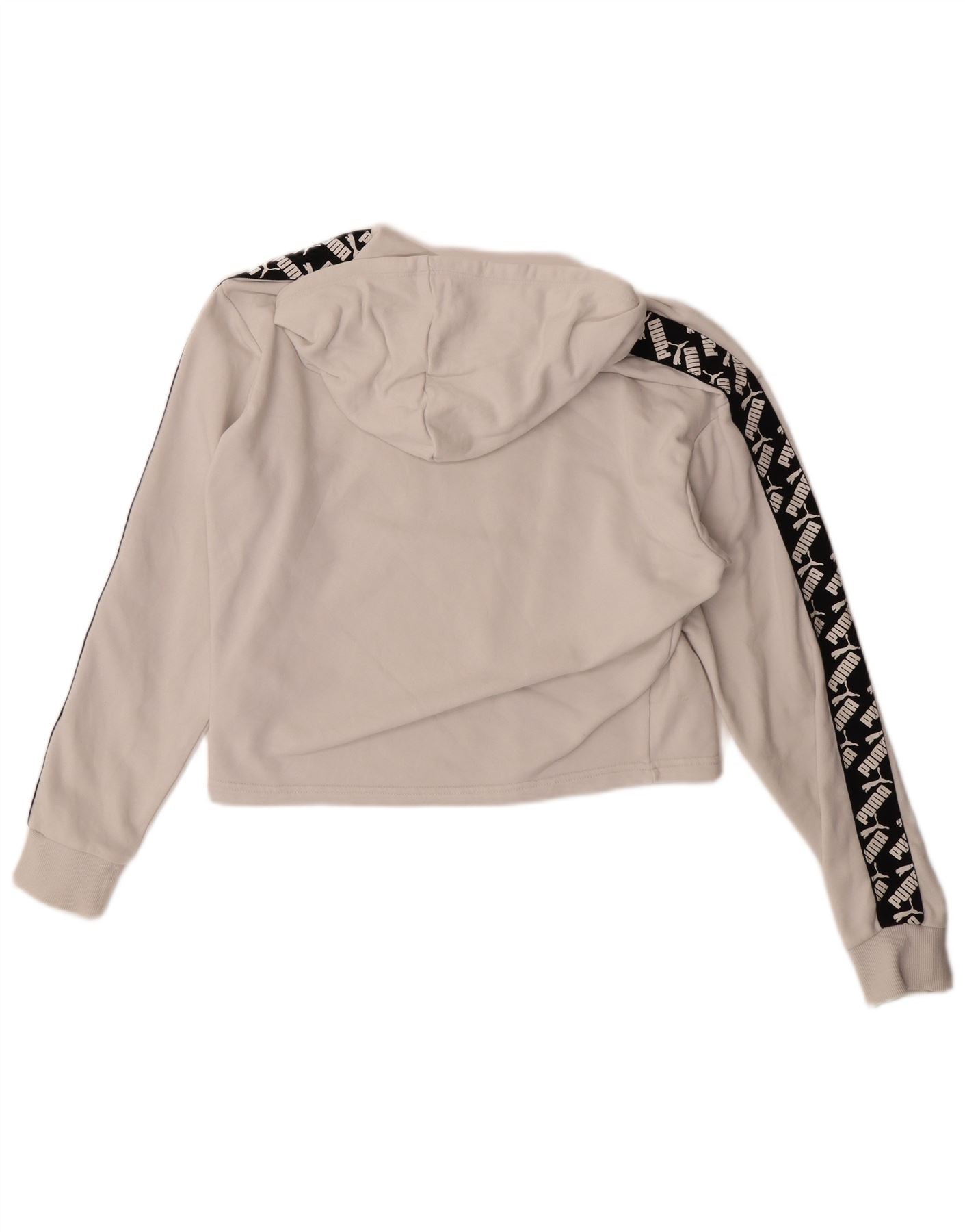 PUMA Womens Oversized Crop Graphic Hoodie Jumper UK 6 XS White Colourblock