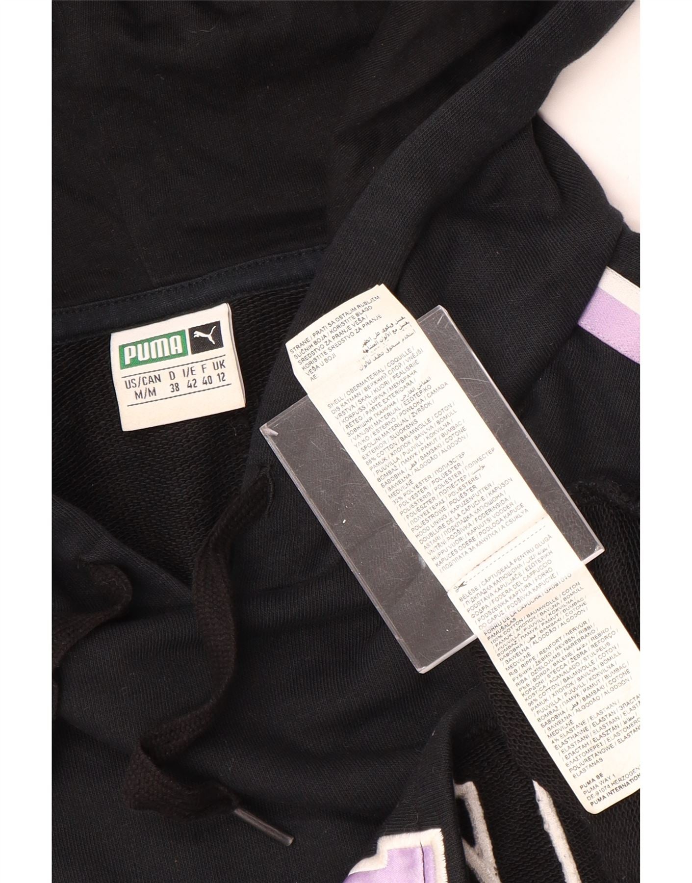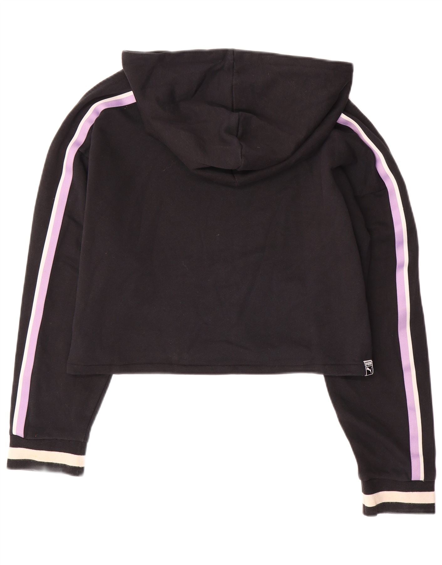 PUMA Womens Oversized Crop Hoodie Jumper UK 12 Medium Black Colourblock