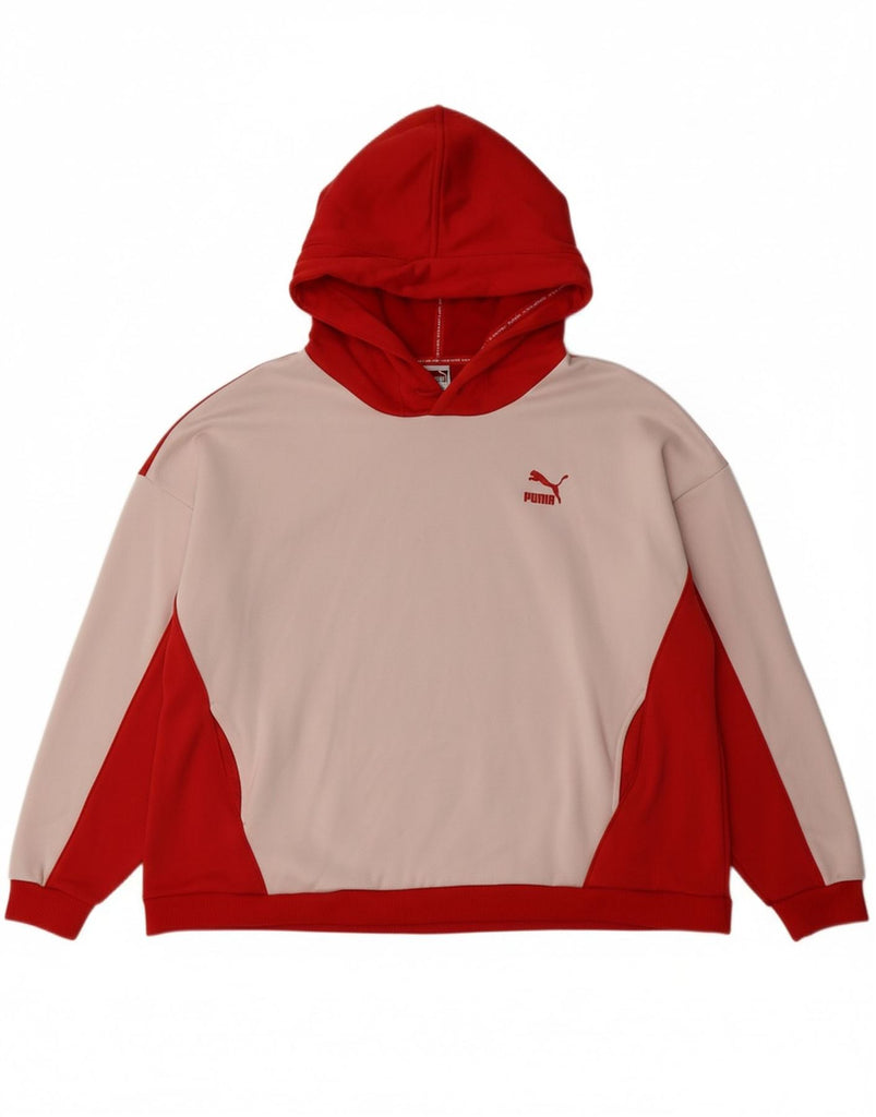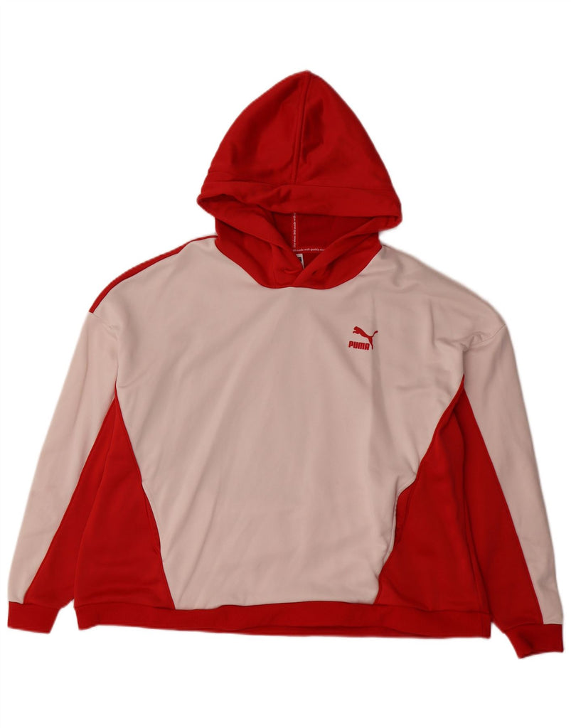 PUMA Womens Oversized Hoodie Jumper UK 14 Medium Red Colourblock Polyester