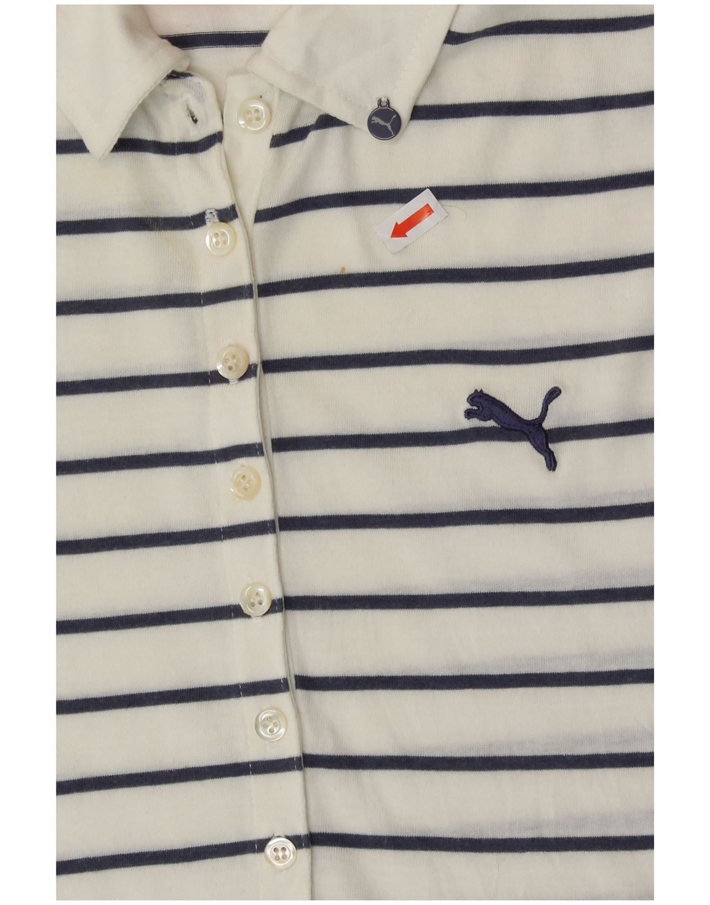 PUMA Womens Polo Shirt UK 12 Medium White Striped