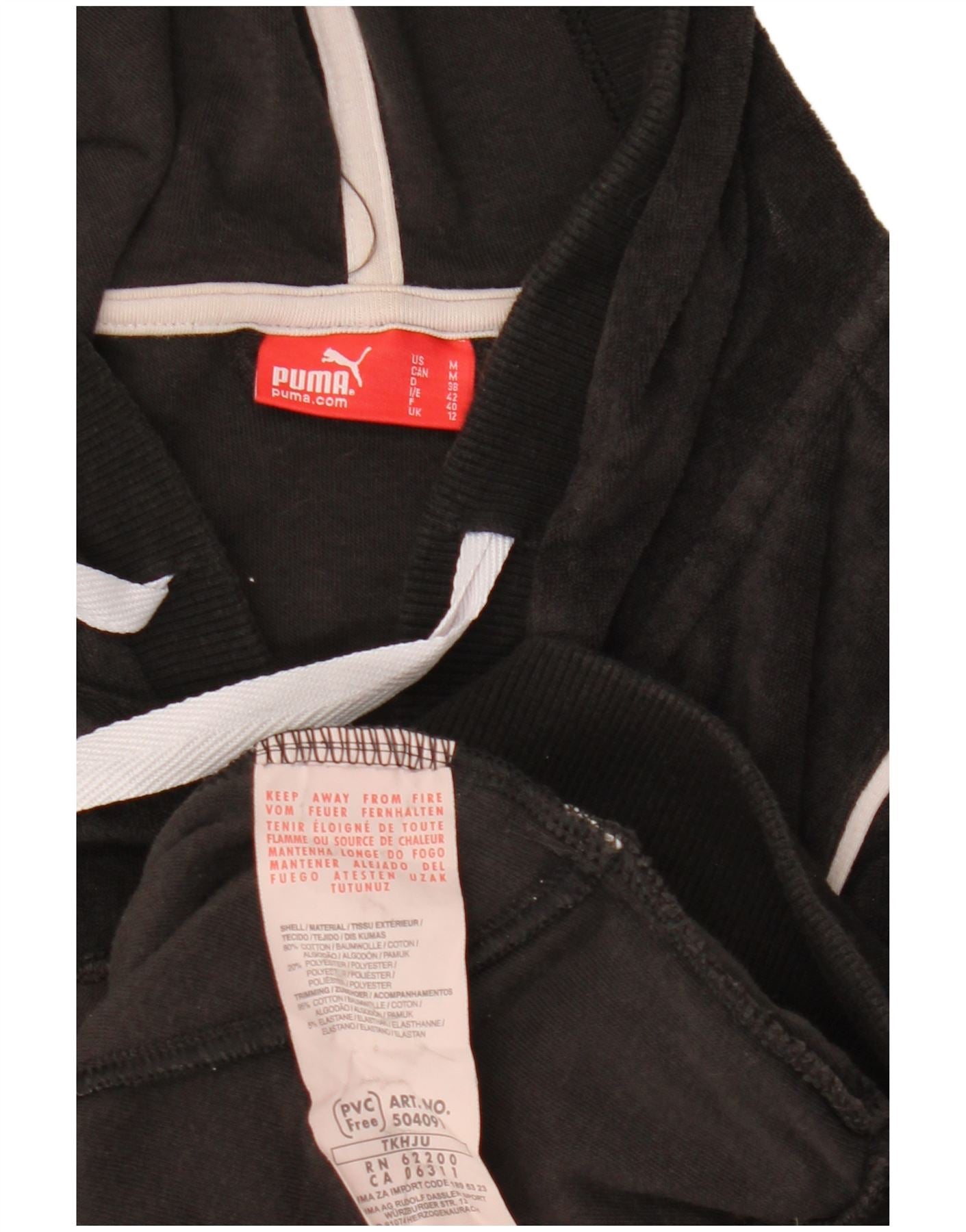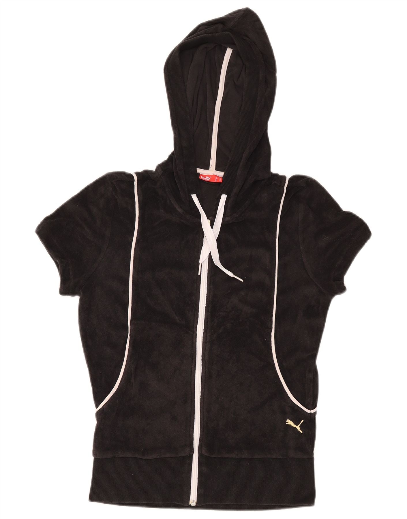 PUMA Womens Short Sleeve Velvet Zip Hoodie Sweater UK 12 Medium Black