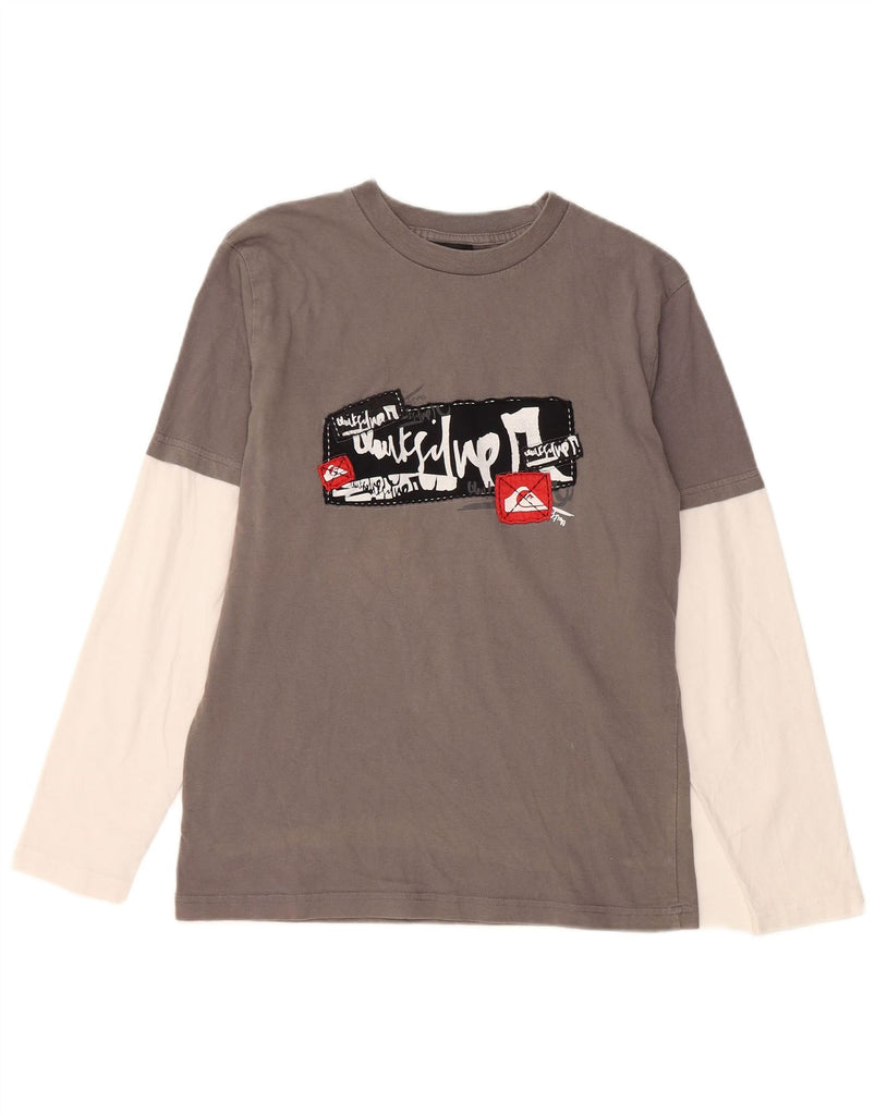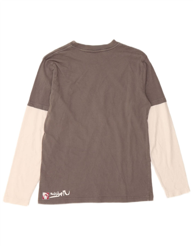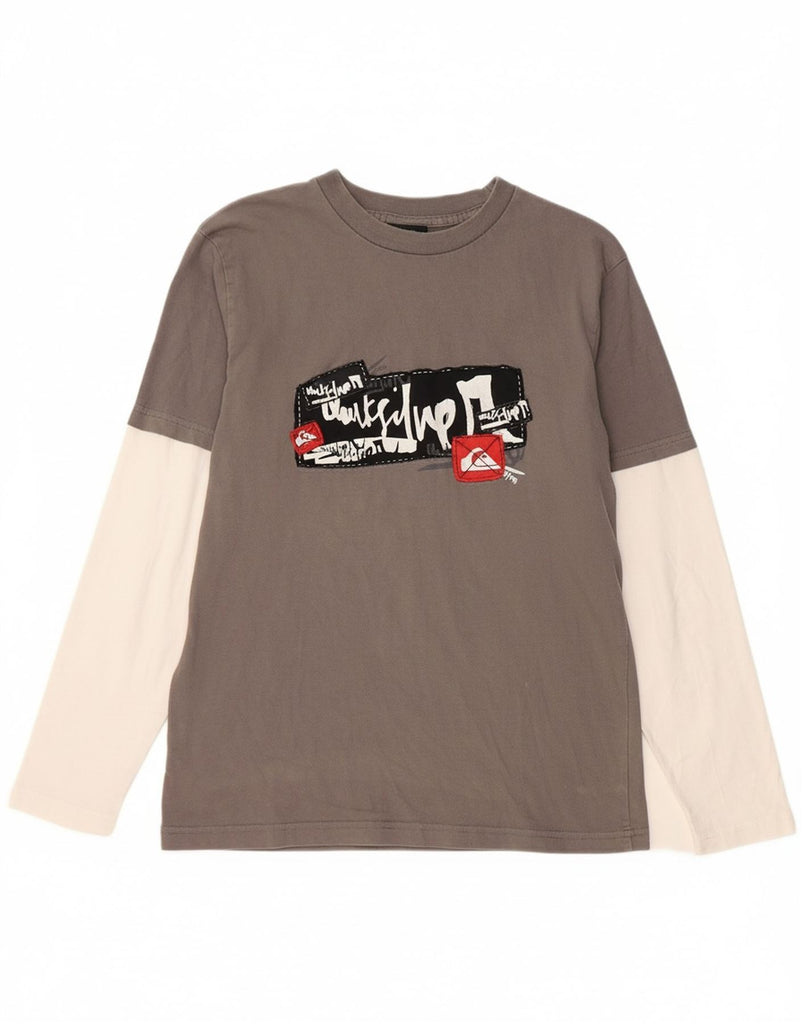 QUIKSILVER Boys Graphic Top Long Sleeve 13-14 Years Grey Colourblock