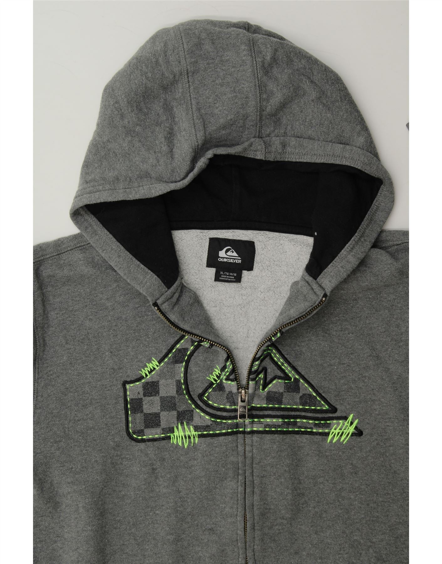 QUIKSILVER Girls Graphic Zip Hoodie Sweater 14-15 Years XL Grey Cotton