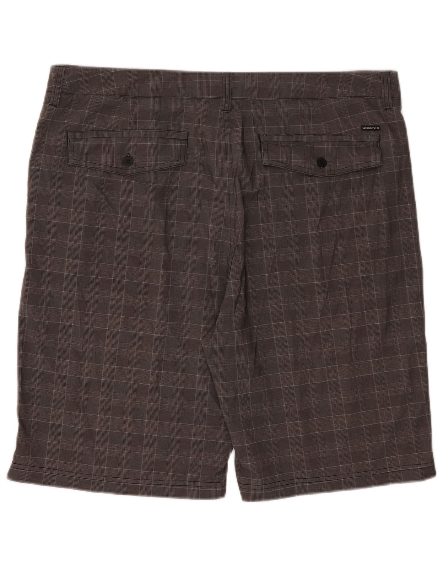 - AI Description: This Quiksilver mens chino shorts are made from a brown woven fabric. The plaid pattern offers a smart, geometrical look. Featuring DRYFLIGHT technology, they are breathable and water resistant. A regular fit and button closure ensure comfort and practicality. Multiple pockets provide convenient storage. These shorts are ideal for sports or casual wear.