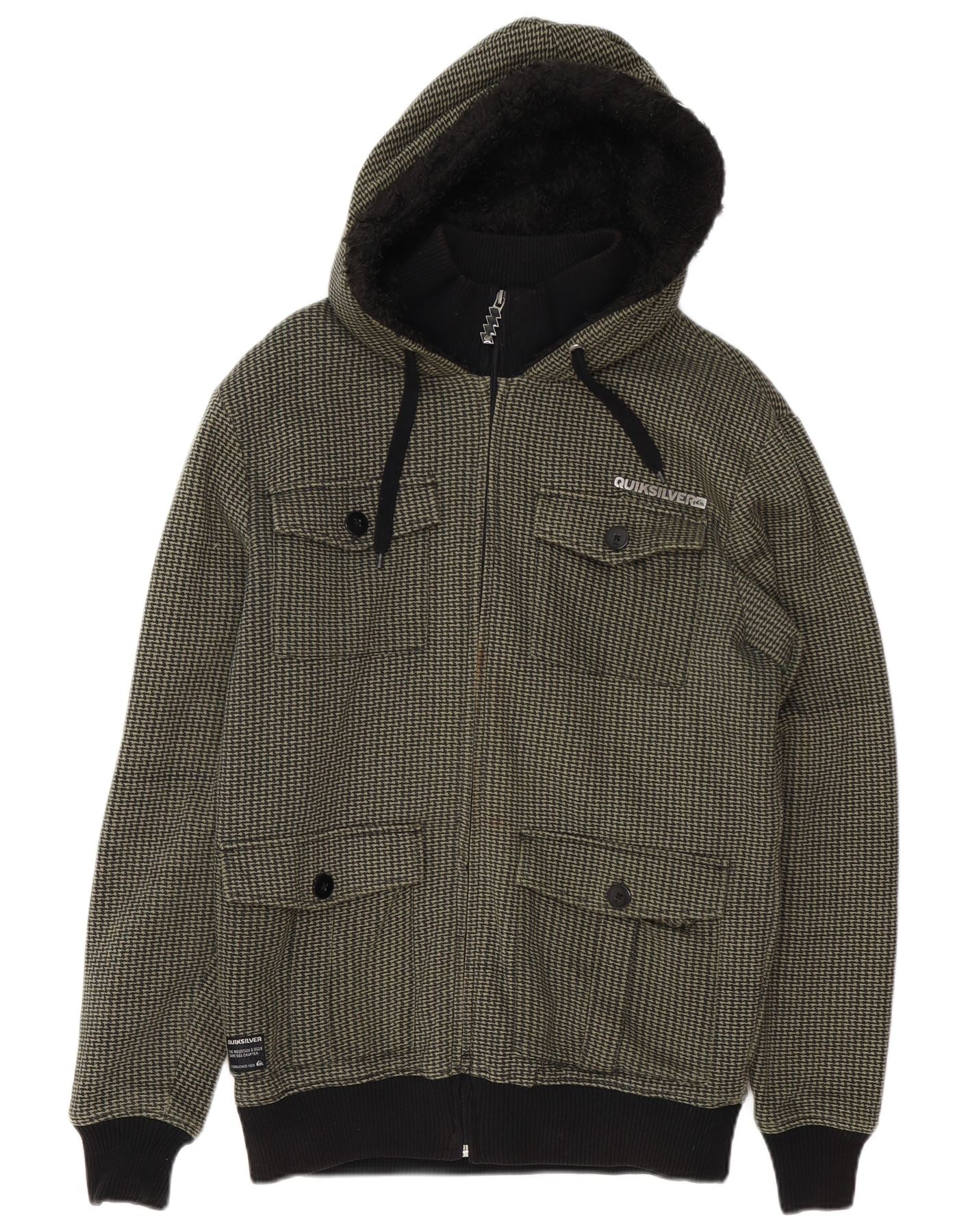 QUIKSILVER Mens Hooded Utility Jacket UK 38 Medium Green Houndstooth