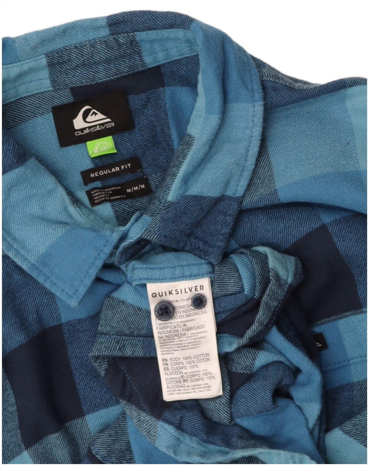 QUIKSILVER Mens Regular Fit Flannel Shirt Medium Blue Check Cotton
