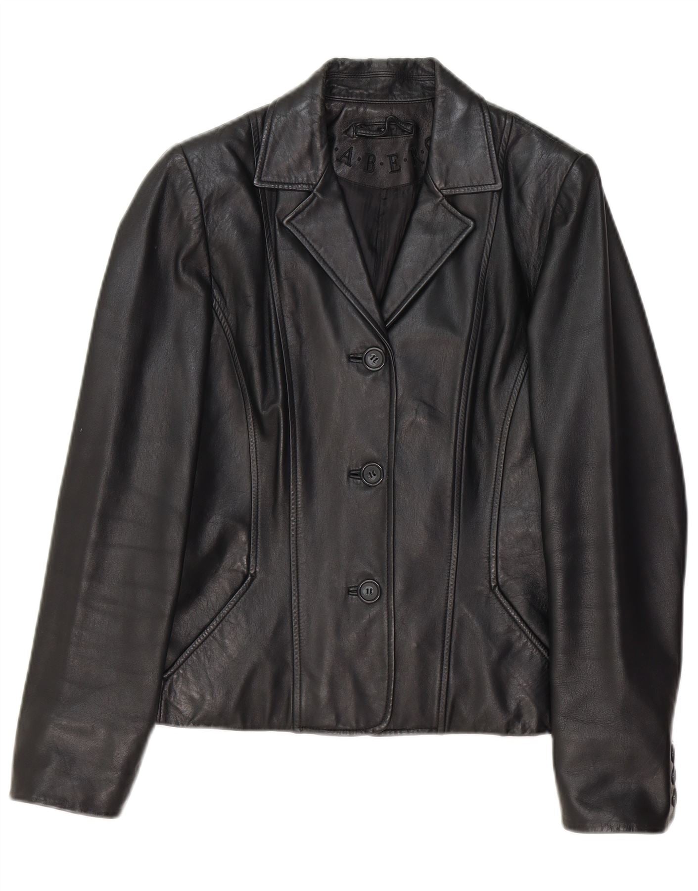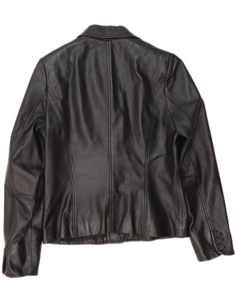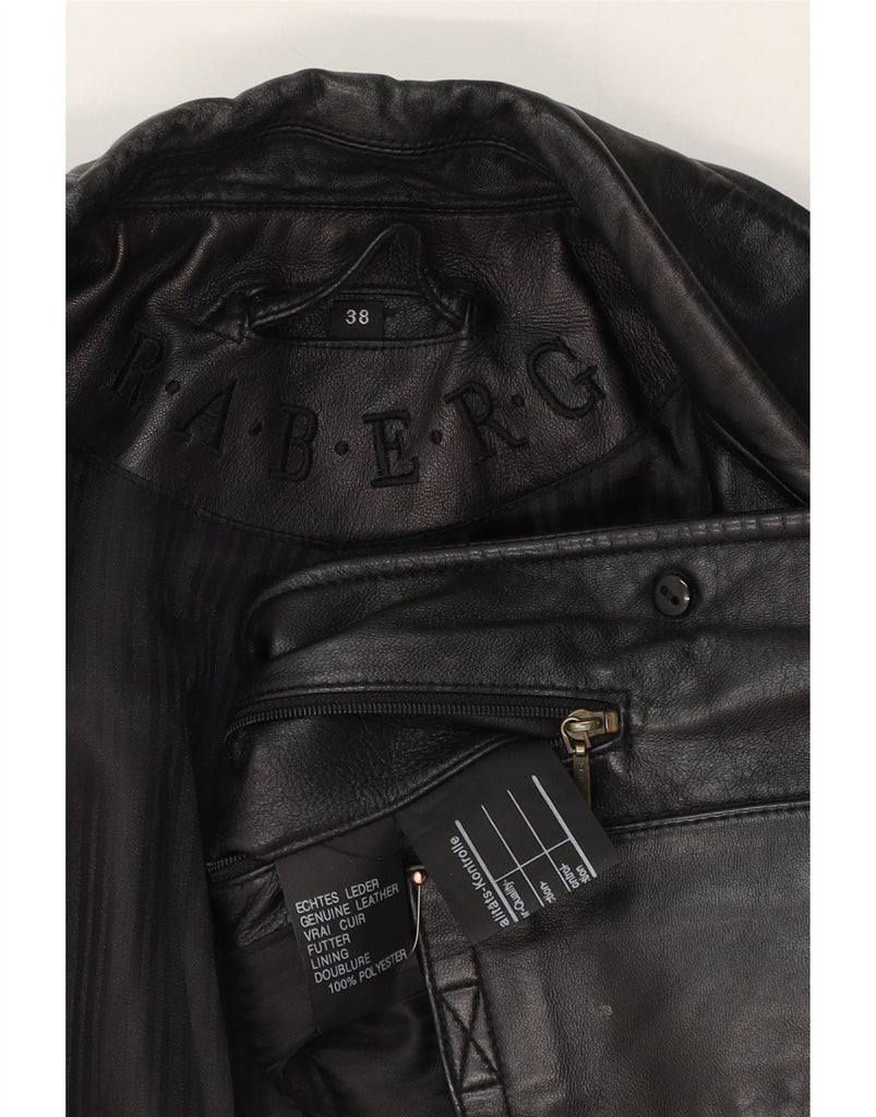 RABERG Womens 3 Button Leather Blazer Jacket EU 38 Medium Black Leather