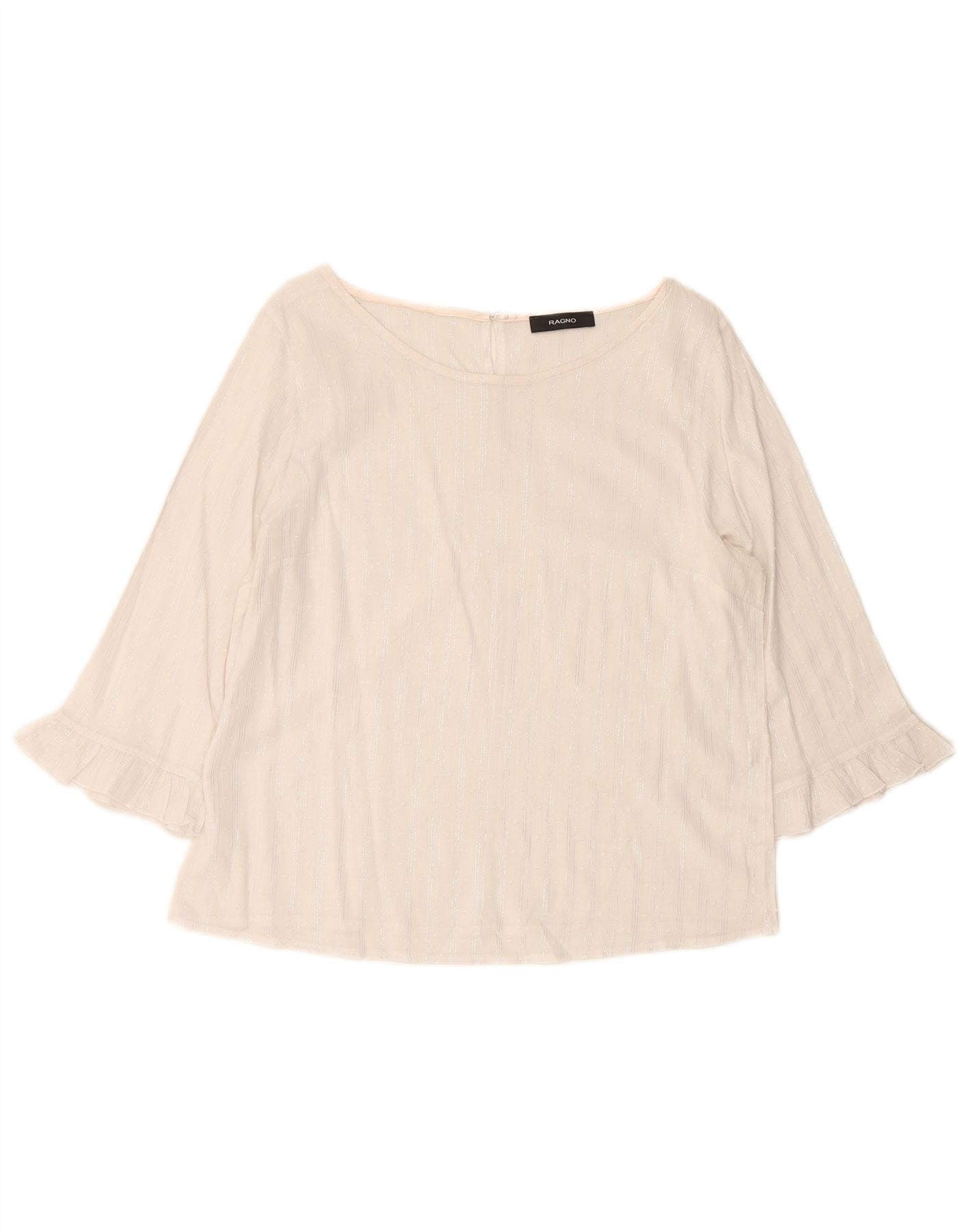 RAGNO Womens 3/4 Sleeve Crop Blouse Top UK 12 Medium White Striped