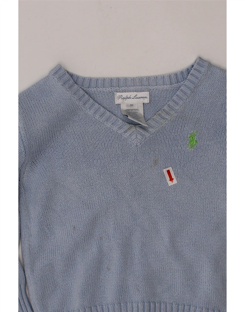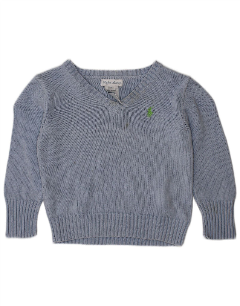 RALPH LAUREN Baby Boys V-Neck Jumper Sweater 6-9 Months Blue Cotton