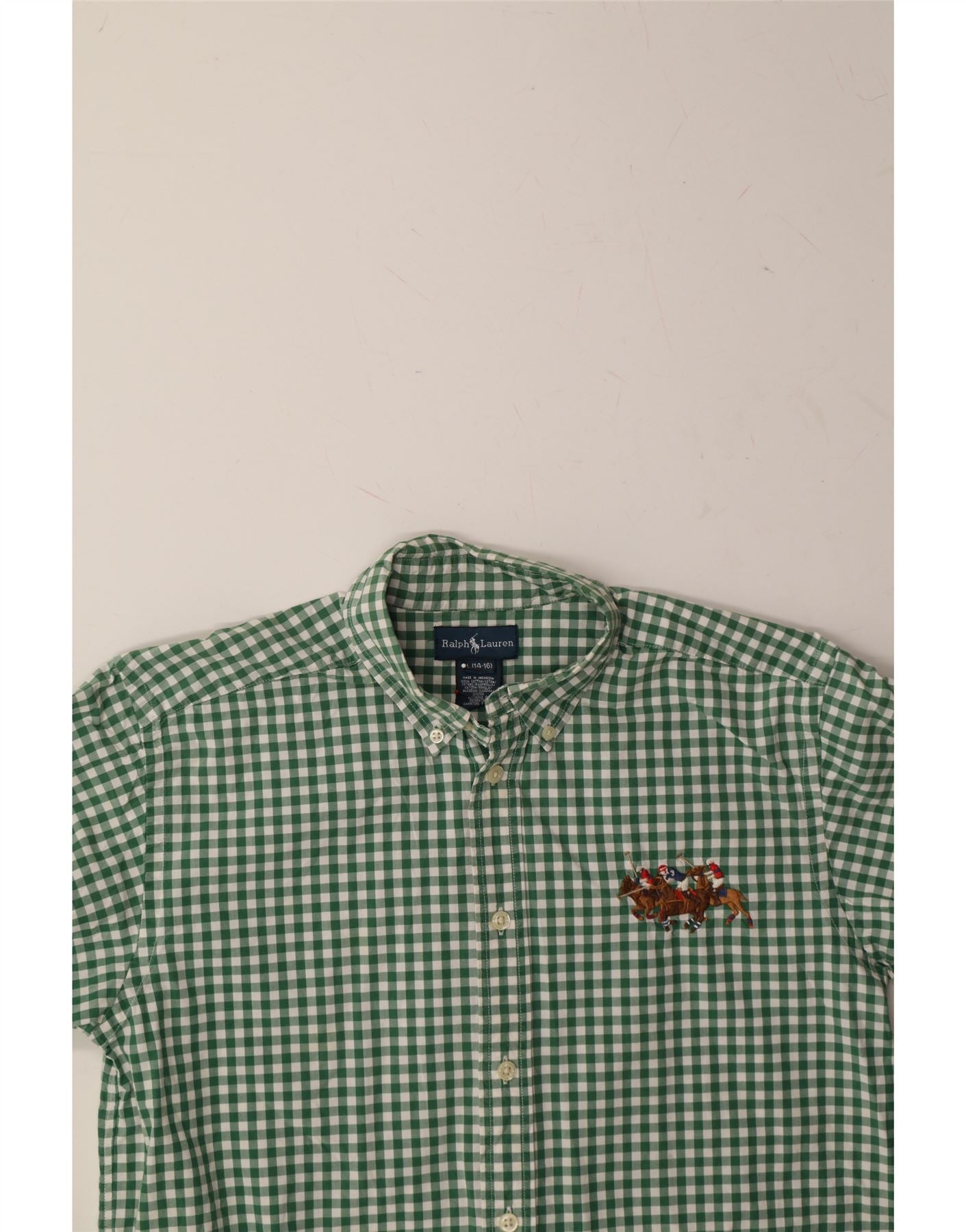 RALPH LAUREN Boys Shirt 14-15 Years Large Green Gingham Cotton
