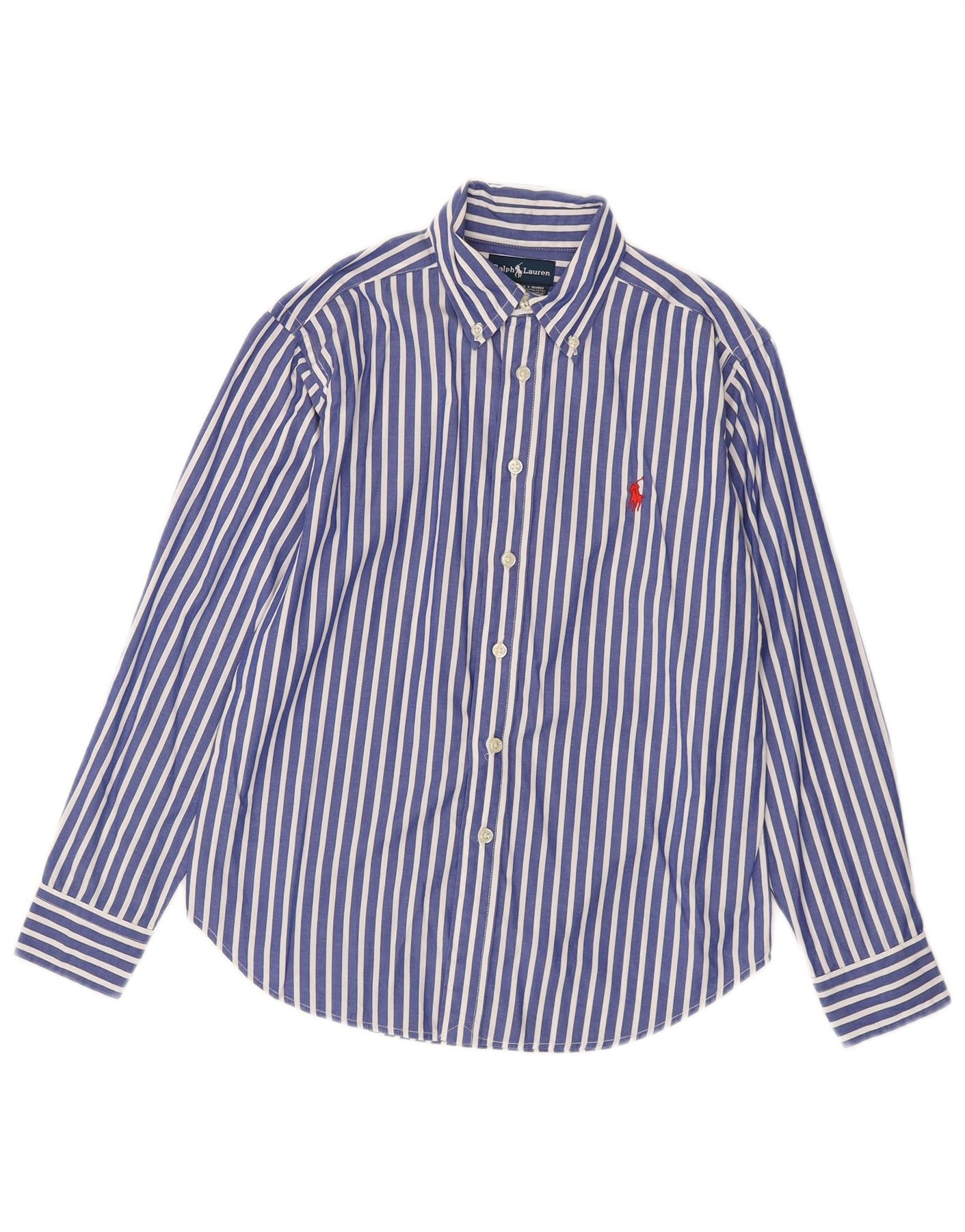RALPH LAUREN Boys Shirt 8-9 Years Small Blue Pinstripe Cotton