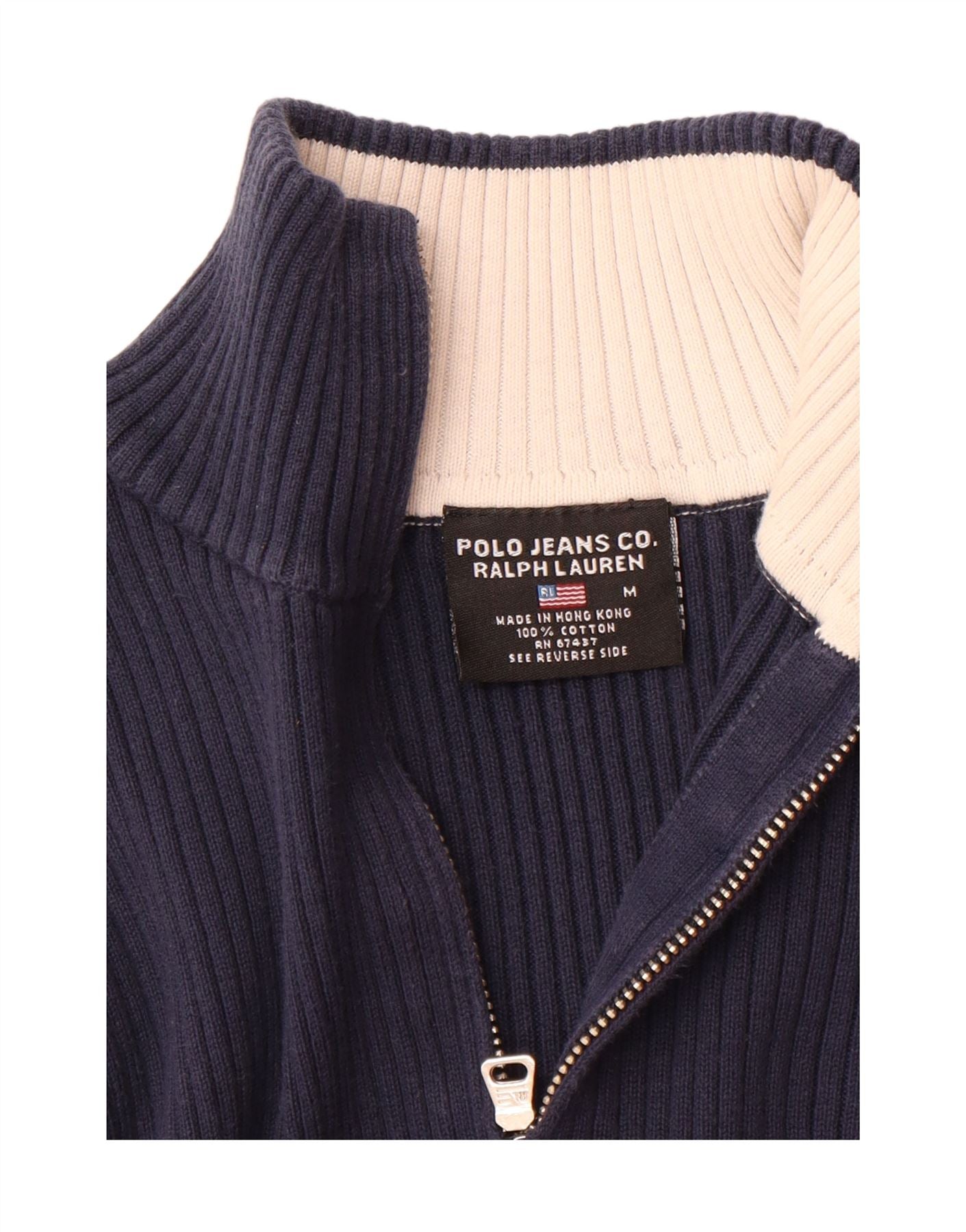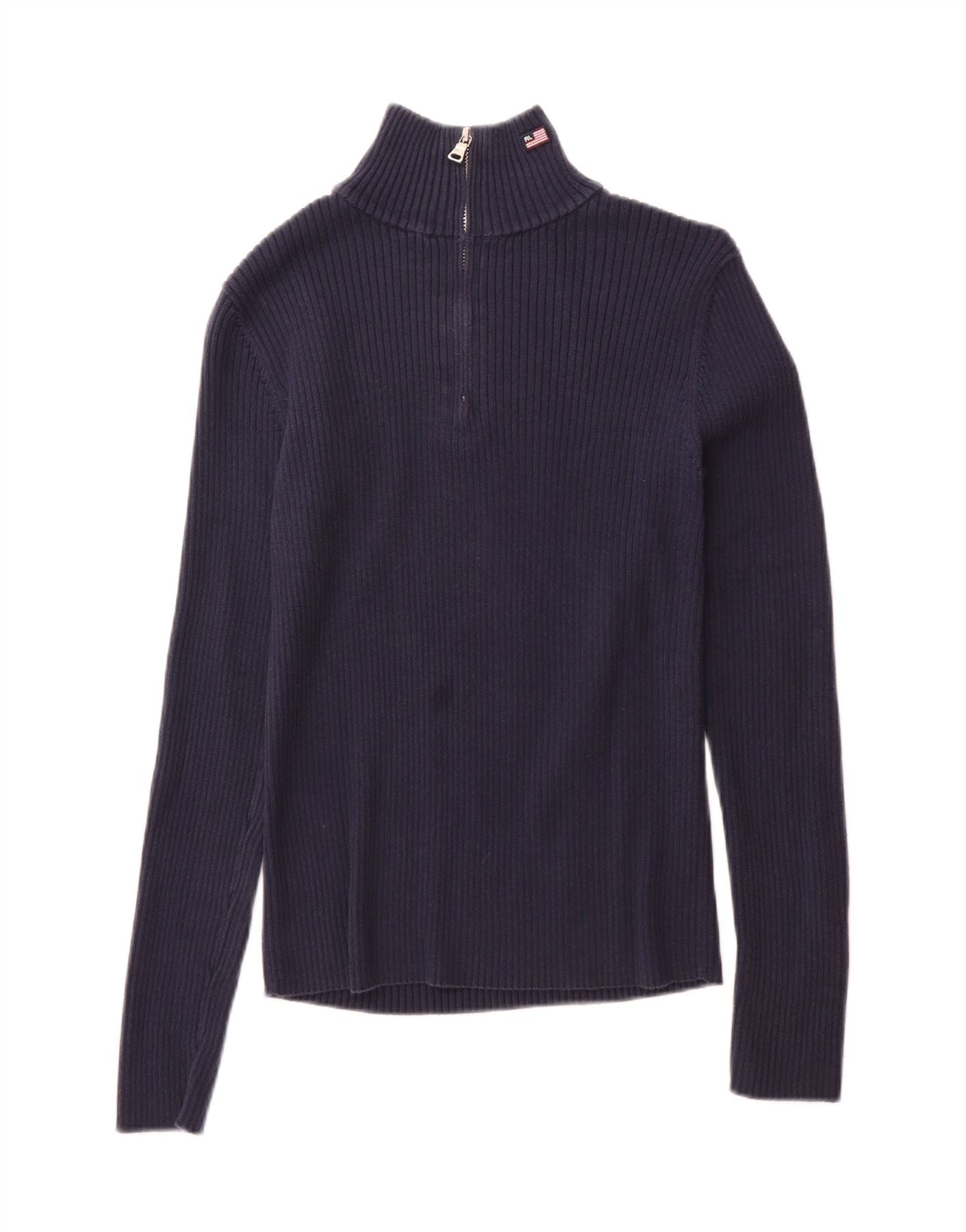 RALPH LAUREN Girls Zip Neck Jumper Sweater 13-14 Years Medium Navy Blue