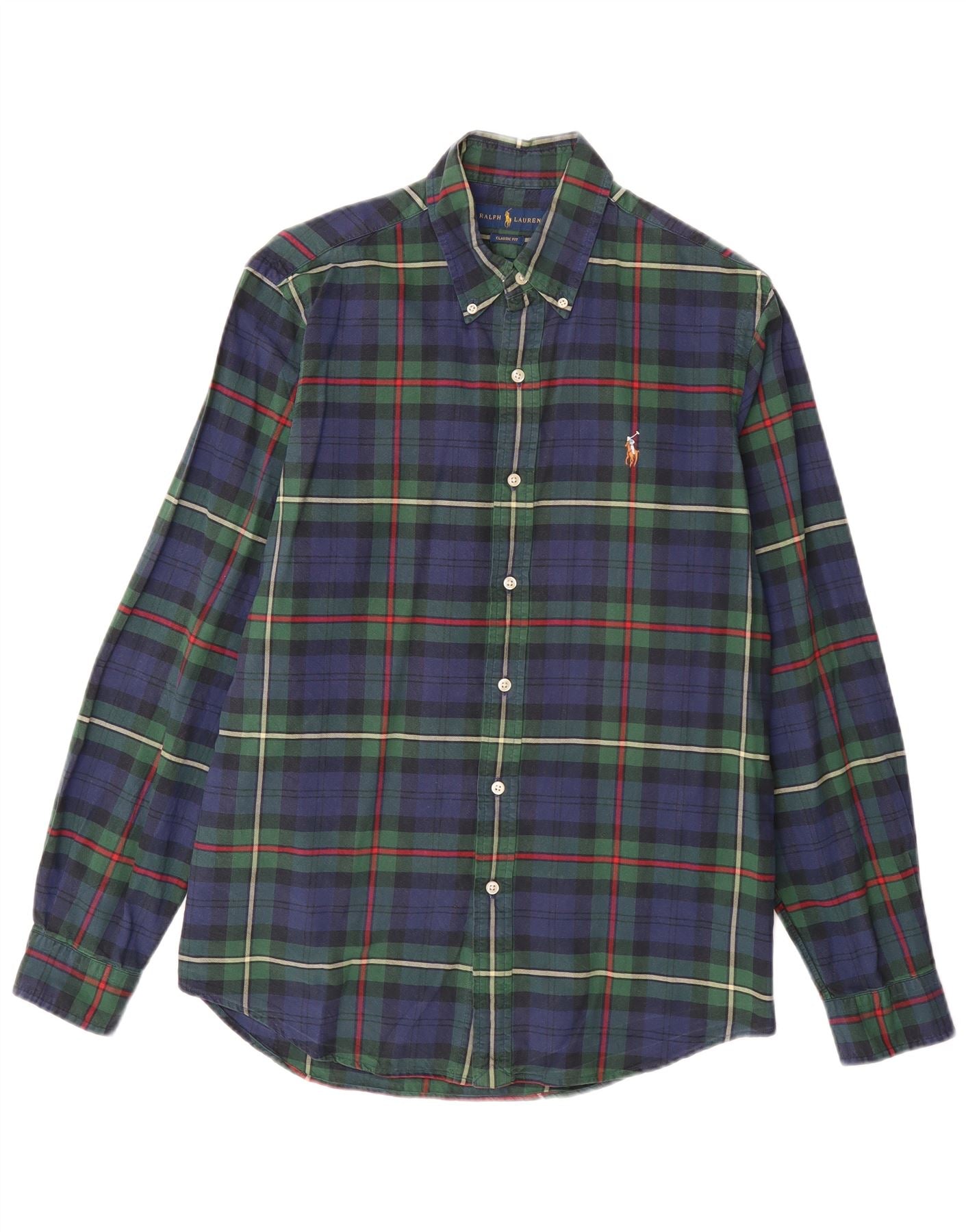 RALPH LAUREN Mens Classic Fit Shirt Medium Navy Blue Check Cotton