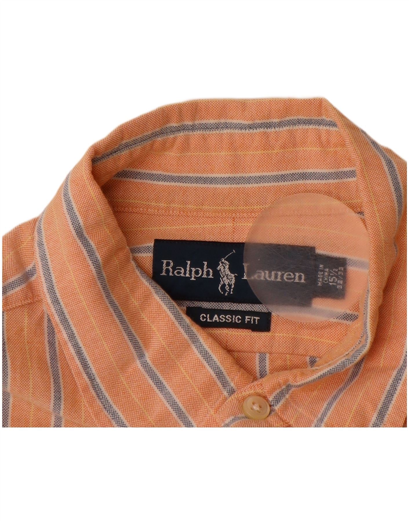 RALPH LAUREN Mens Classic Fit Shirt Size 15 1/2 Medium Orange Striped