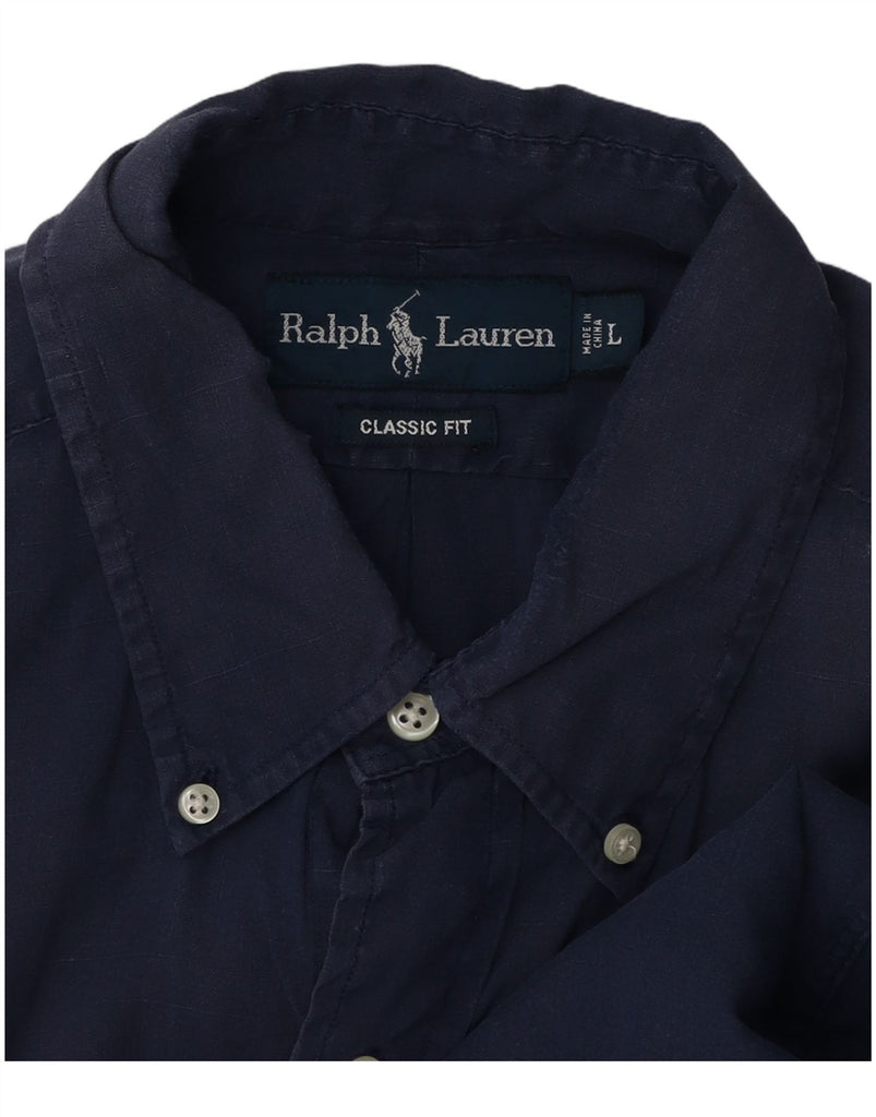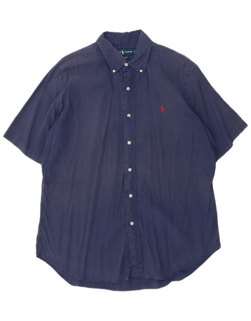 RALPH LAUREN Mens Classic Fit Short Sleeve Shirt Large Navy Blue Linen