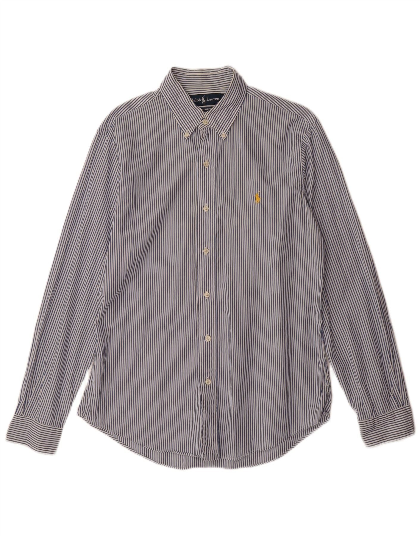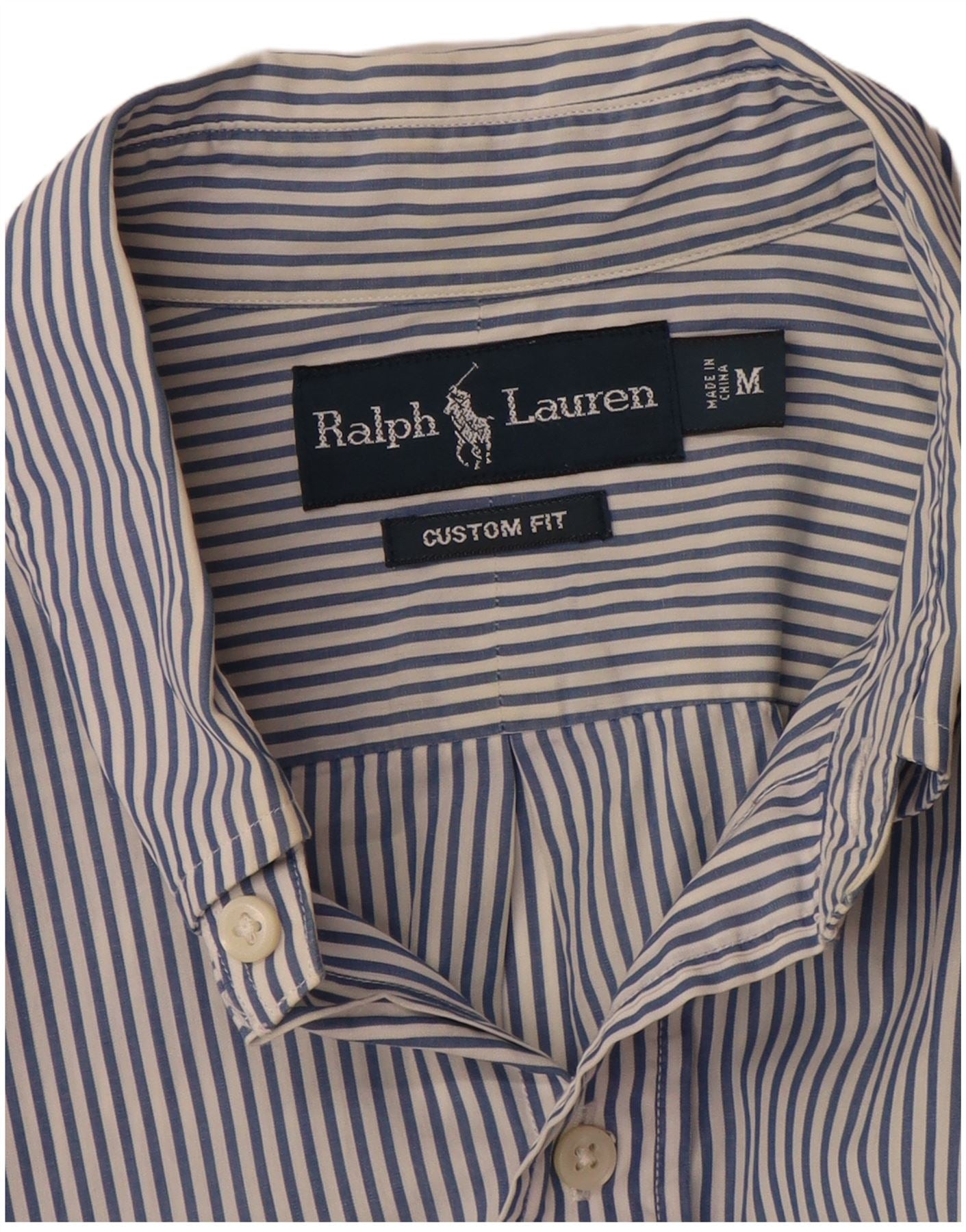 RALPH LAUREN Mens Custom Fit Shirt Medium Blue Striped Cotton