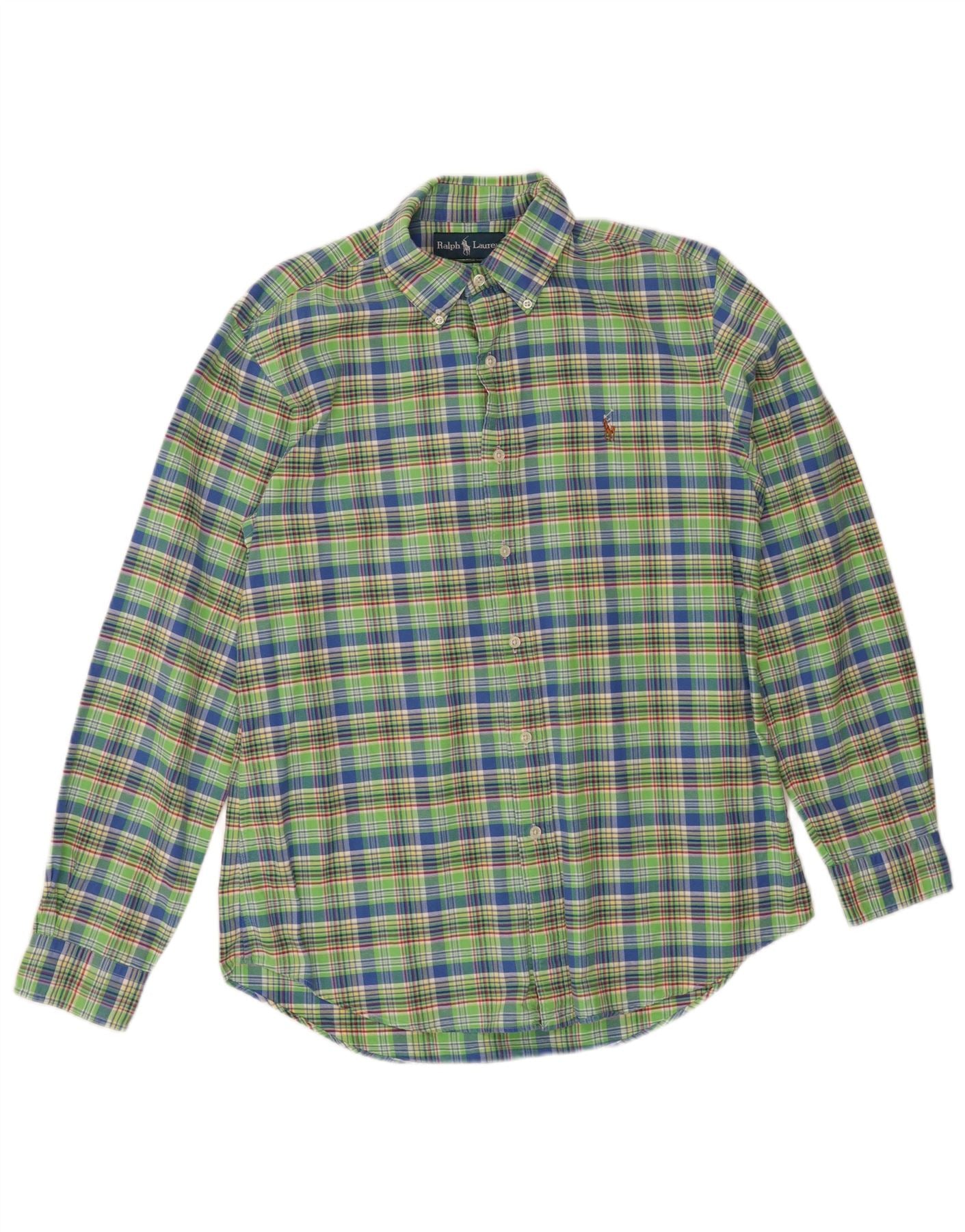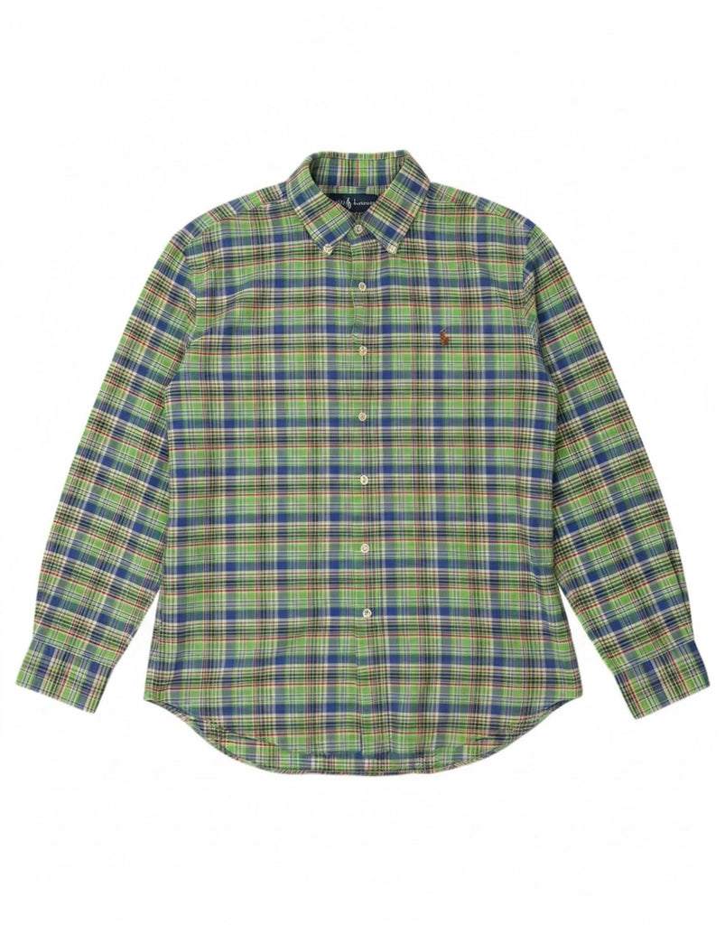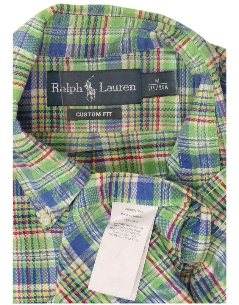RALPH LAUREN Mens Custom Fit Shirt Medium Green Check Cotton