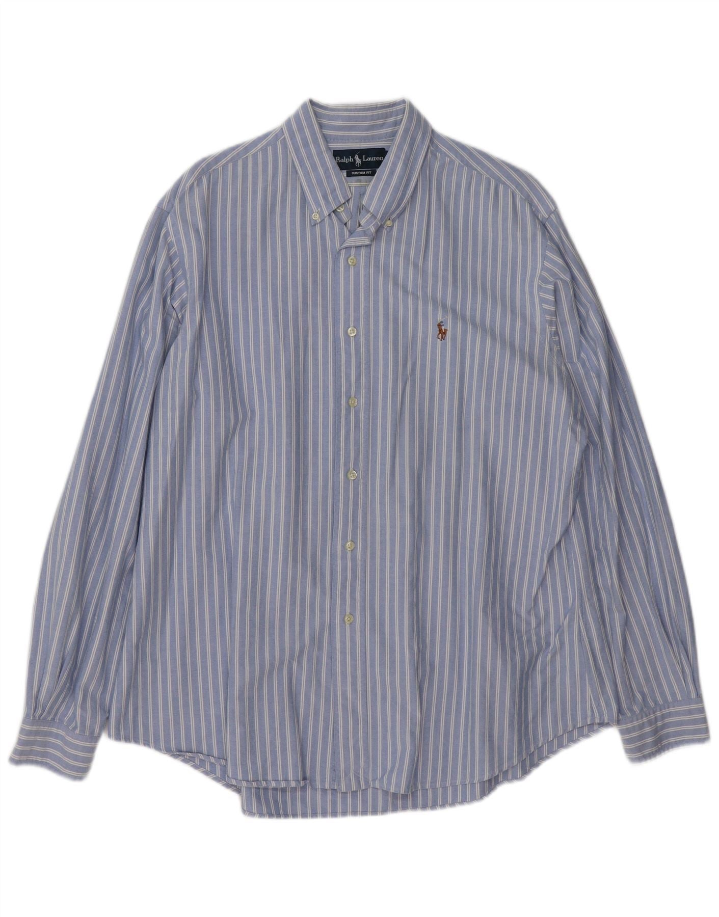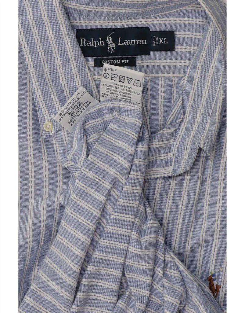 RALPH LAUREN Mens Custom Fit Shirt XL Blue Striped Cotton