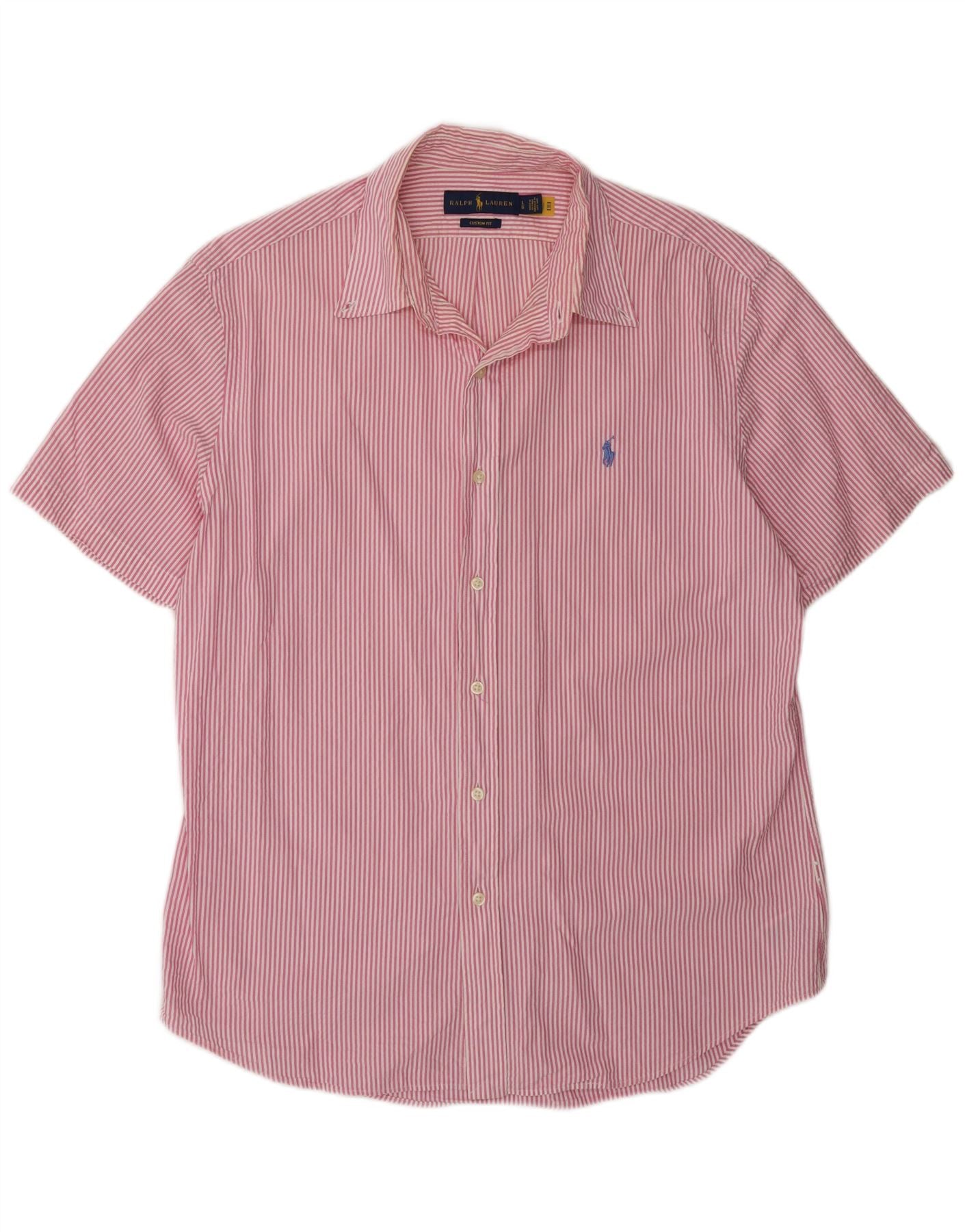 RALPH LAUREN Mens Custom Fit Short Sleeve Shirt Large Pink Striped Cotton