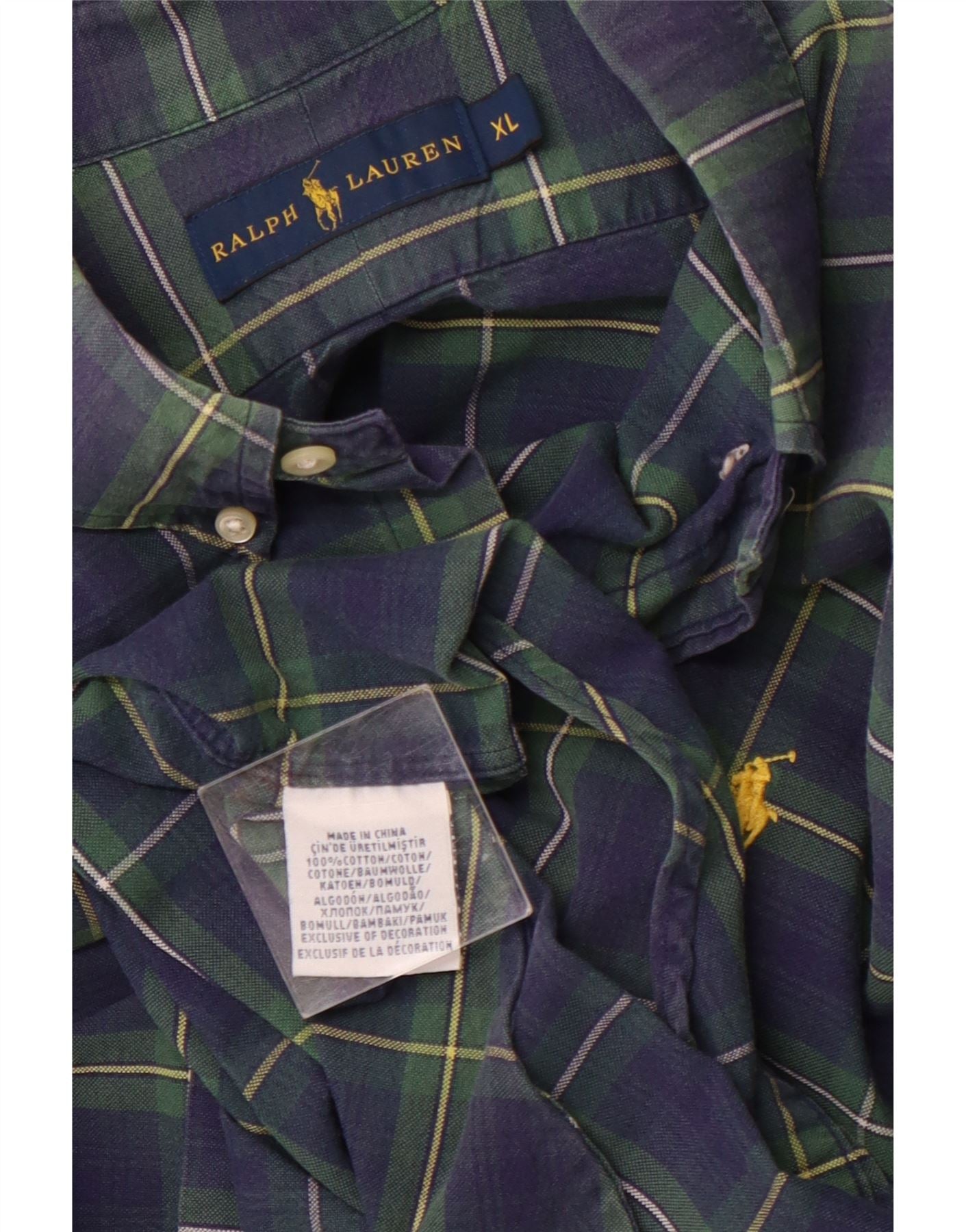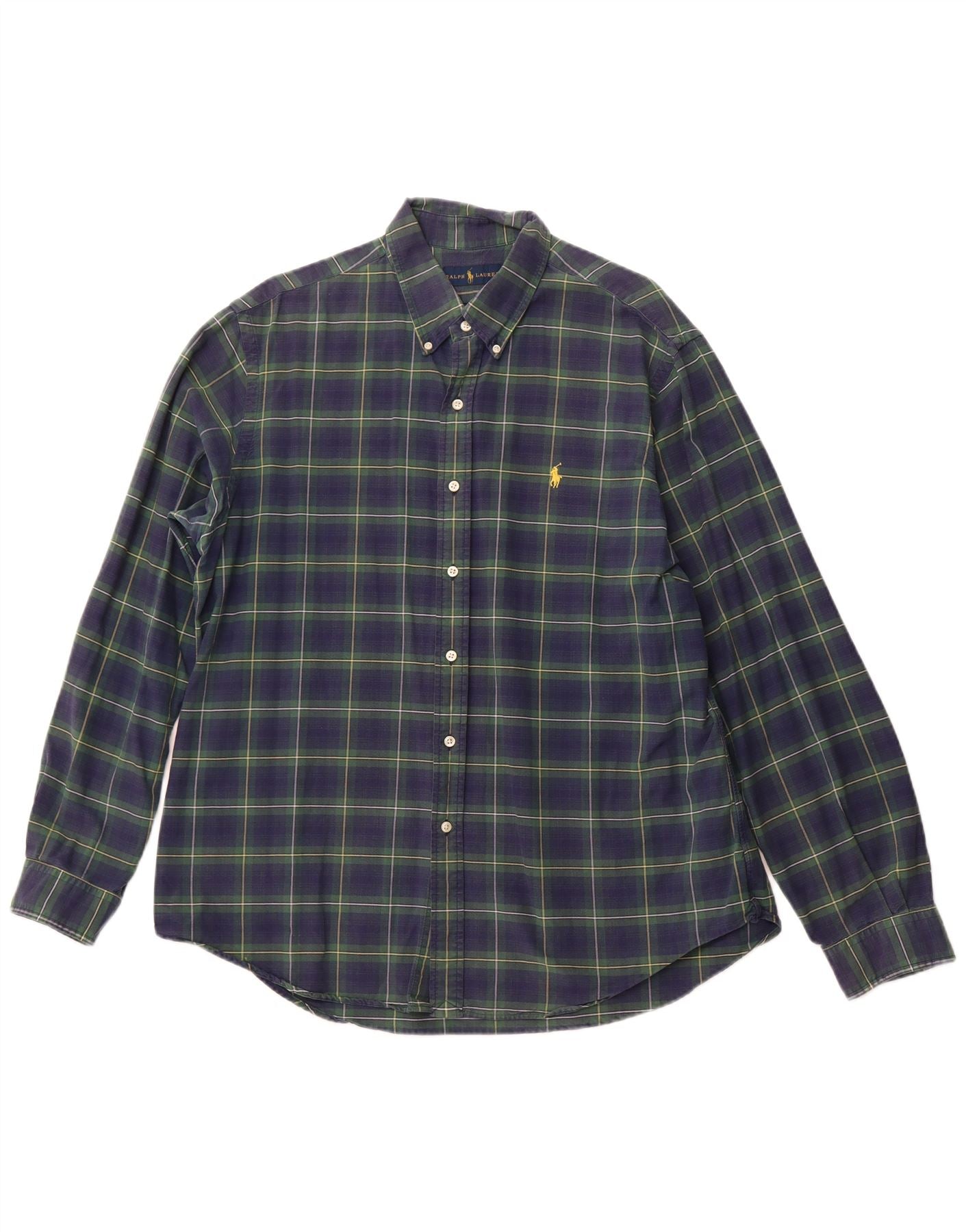 RALPH LAUREN Mens Flannel Shirt XL Navy Blue Check Cotton