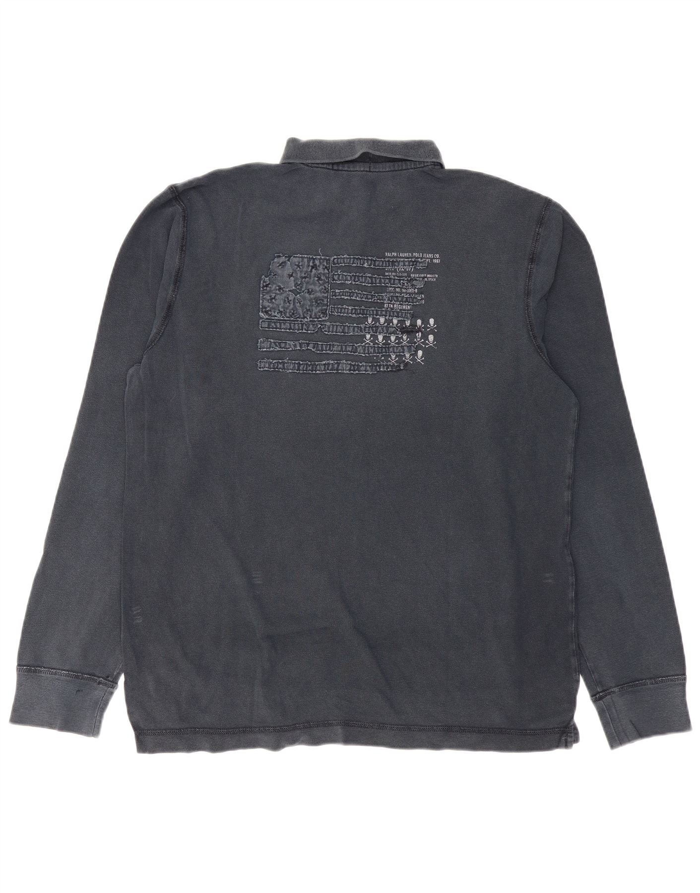 RALPH LAUREN Mens Graphic Long Sleeve Polo Shirt Large Navy Blue