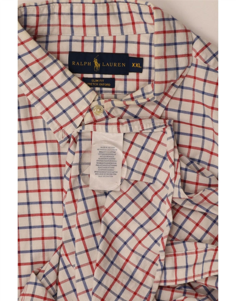 RALPH LAUREN Mens Slim Fit Shirt 2XL White Check Cotton