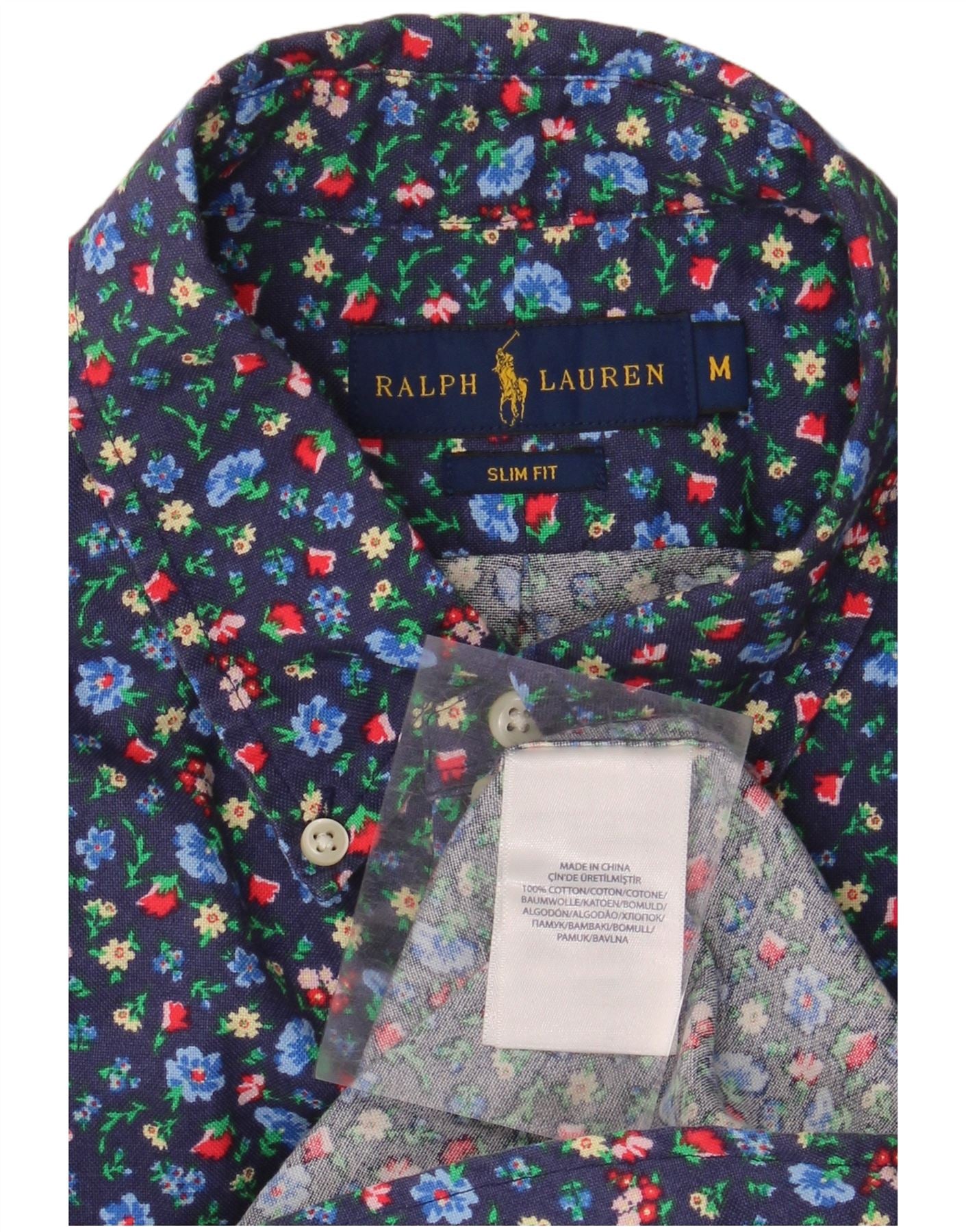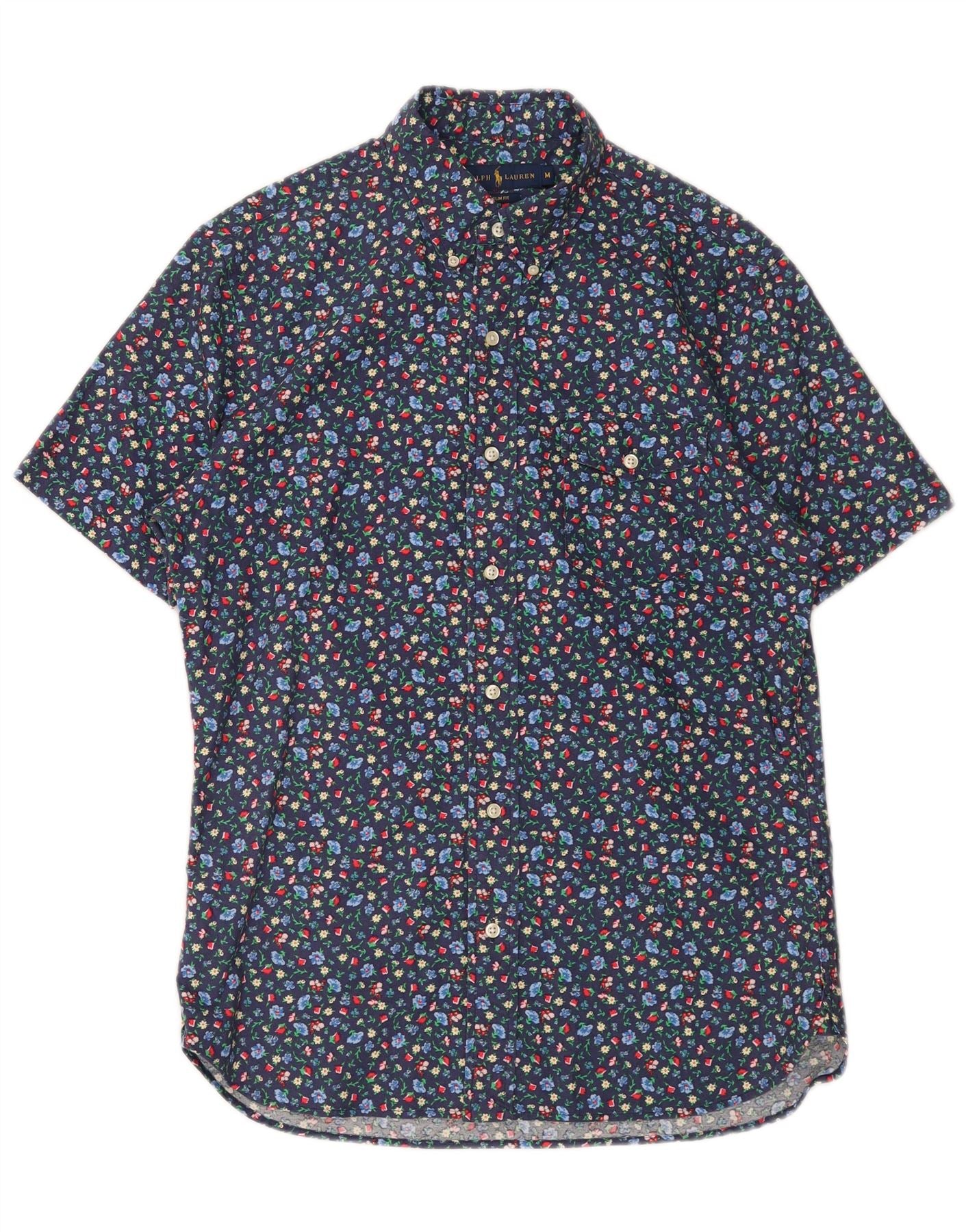 RALPH LAUREN Mens Slim Fit Short Sleeve Shirt Medium Navy Blue Floral