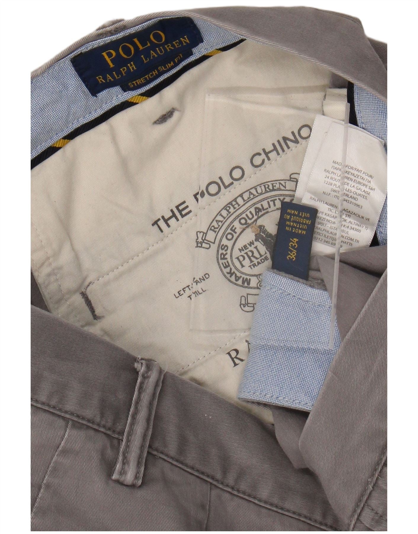 RALPH LAUREN Mens Stretch Slim Fit Chino Trousers W36 L34 Grey Cotton