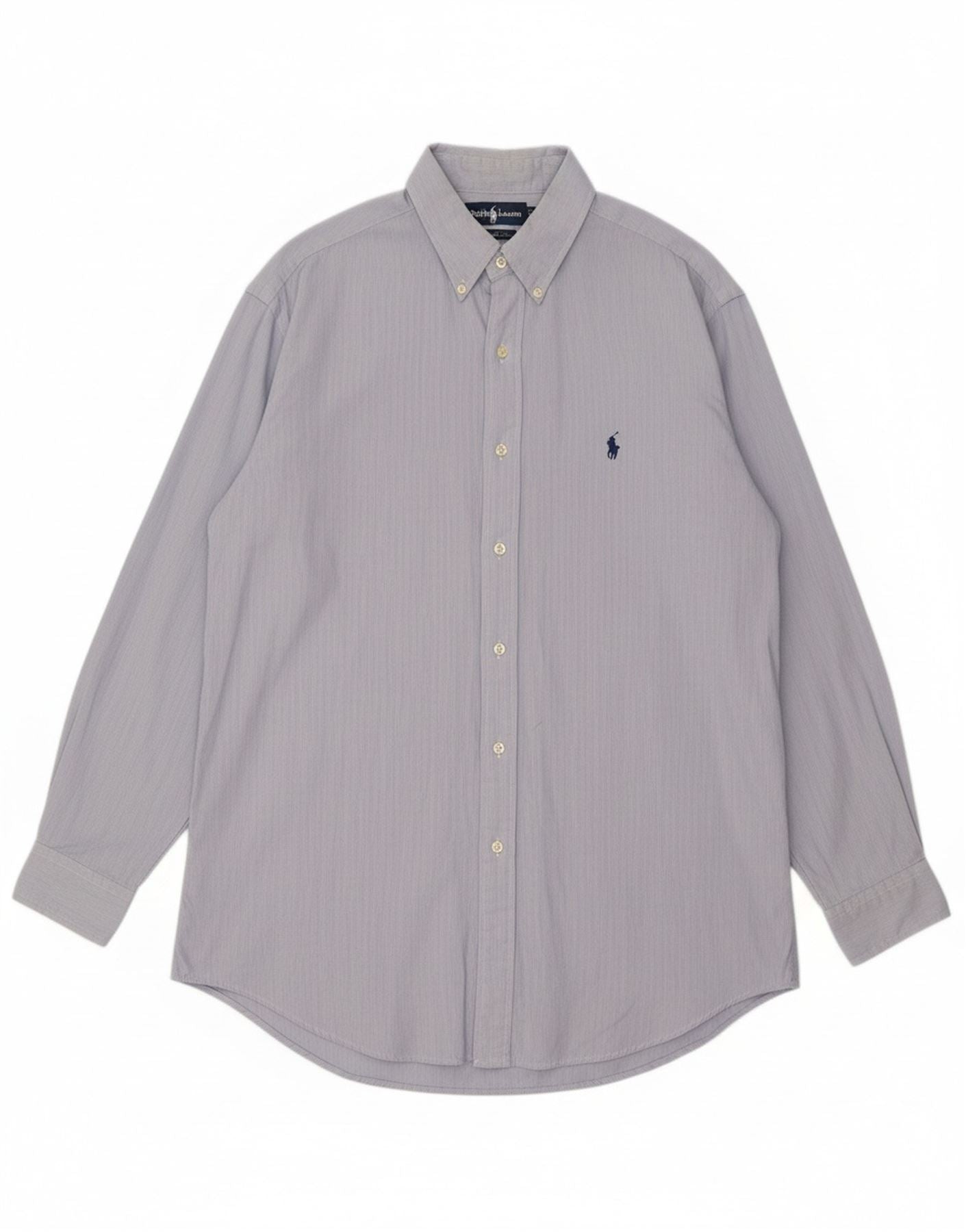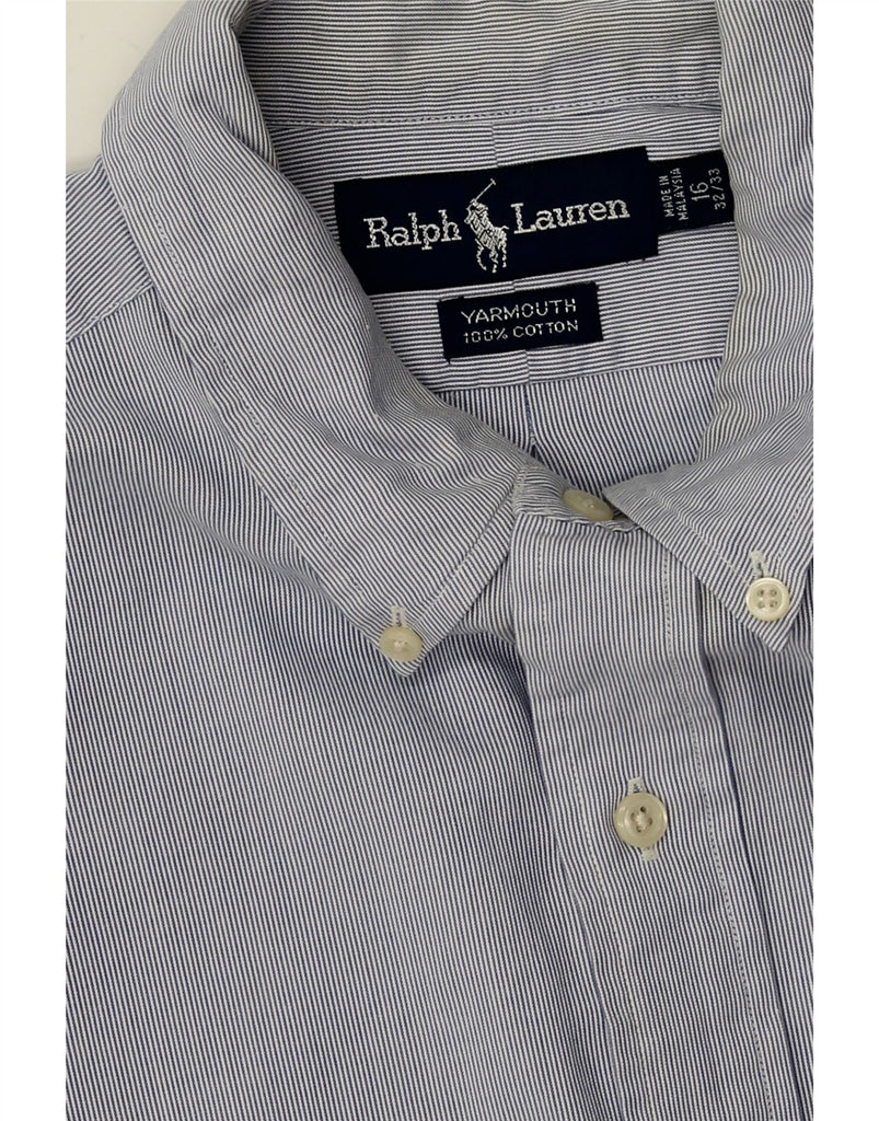 RALPH LAUREN Mens Yarmouth Shirt Size 16 Large Blue Pinstripe Cotton