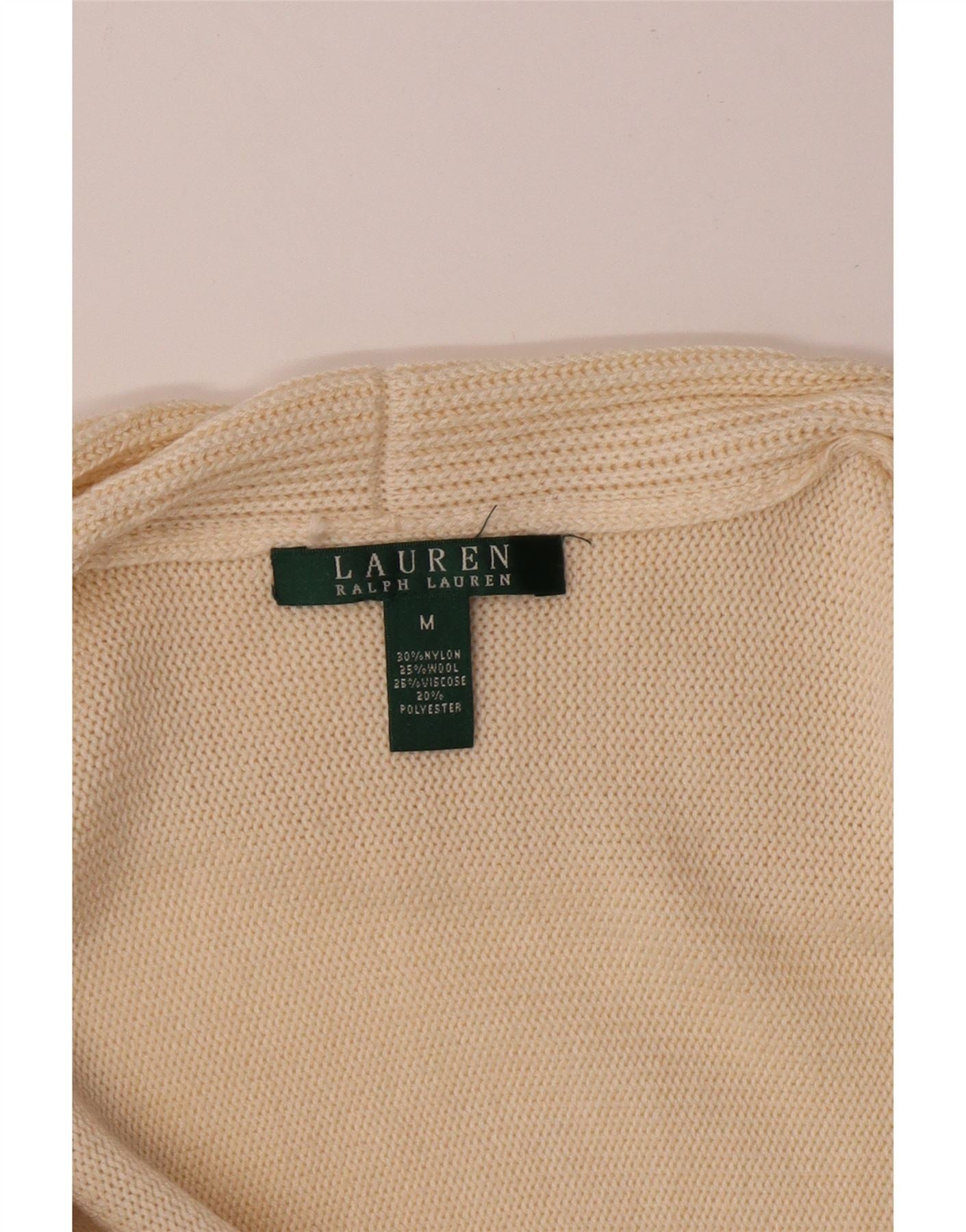 RALPH LAUREN Womens 3/4 Sleeve Cardigan Sweater UK 14 Medium Off White