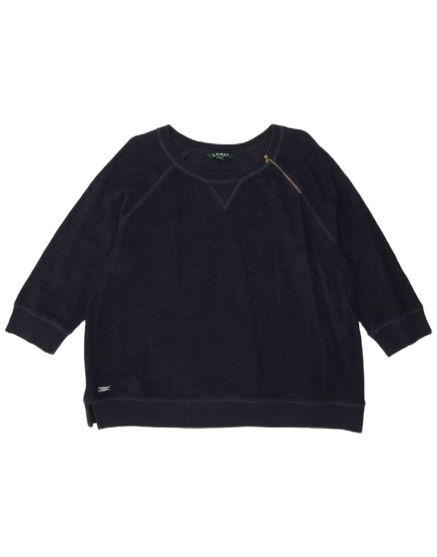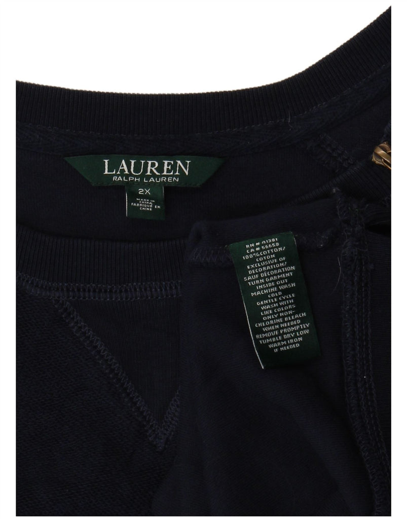RALPH LAUREN Womens 3/4 Sleeve Sweatshirt Jumper UK 20 2XL Navy Blue