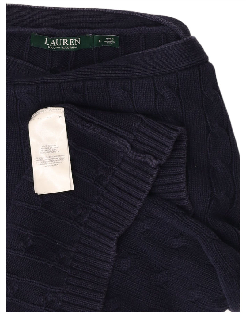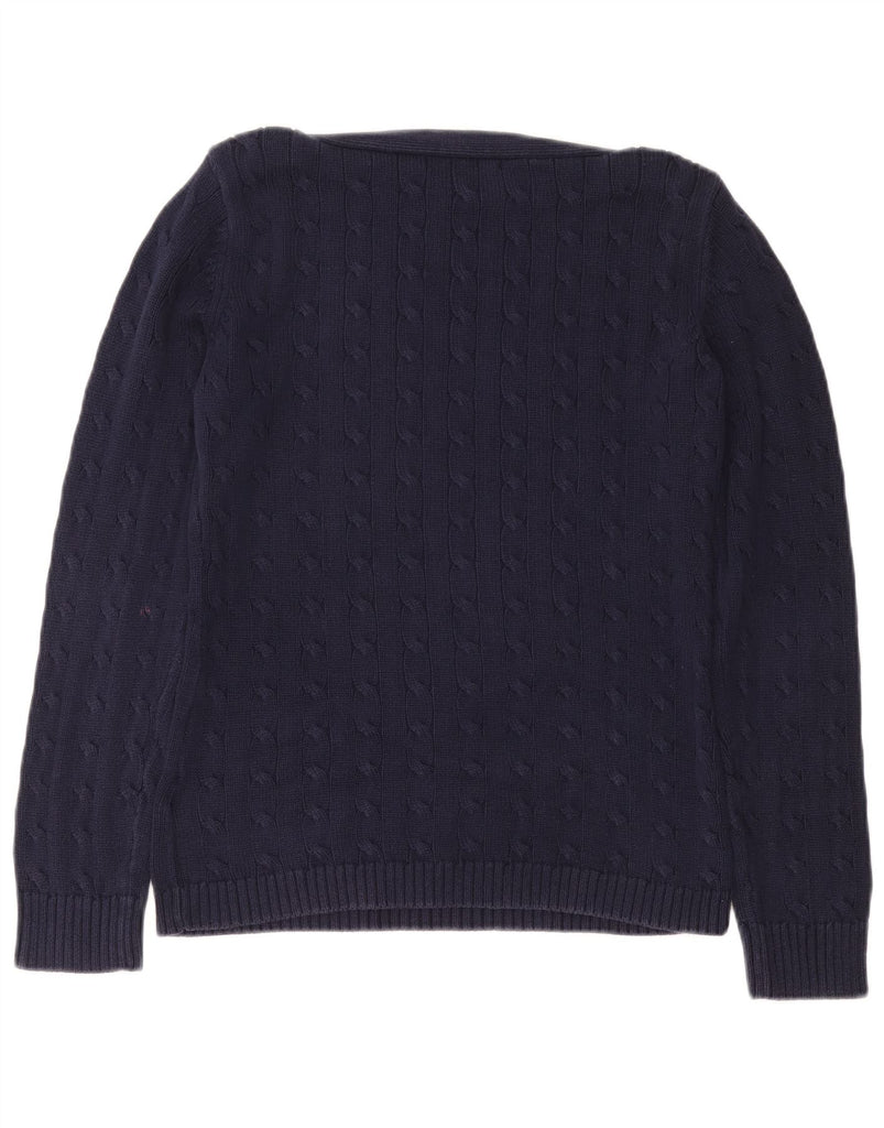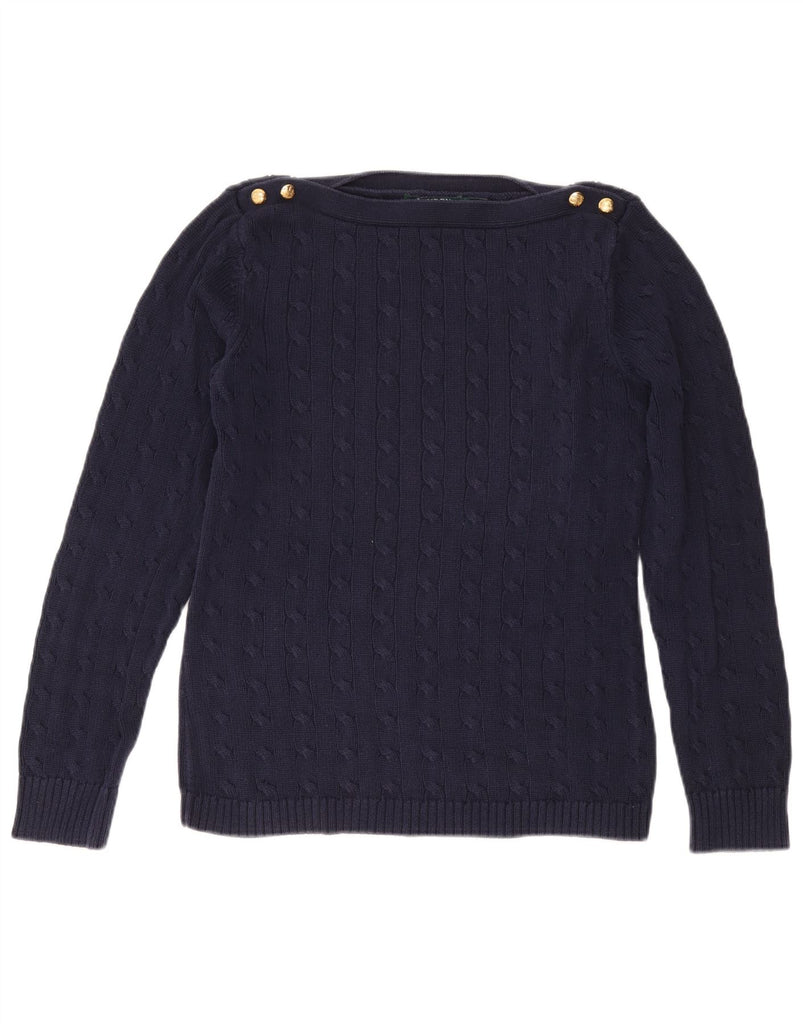 RALPH LAUREN Womens Boat Neck Jumper Sweater UK 14 Large Navy Blue Cotton