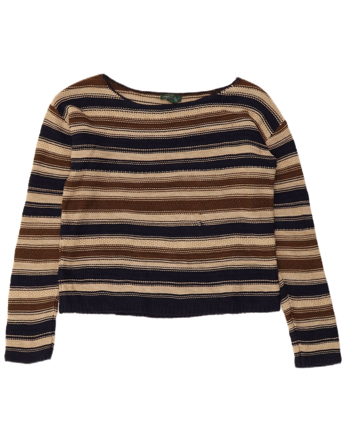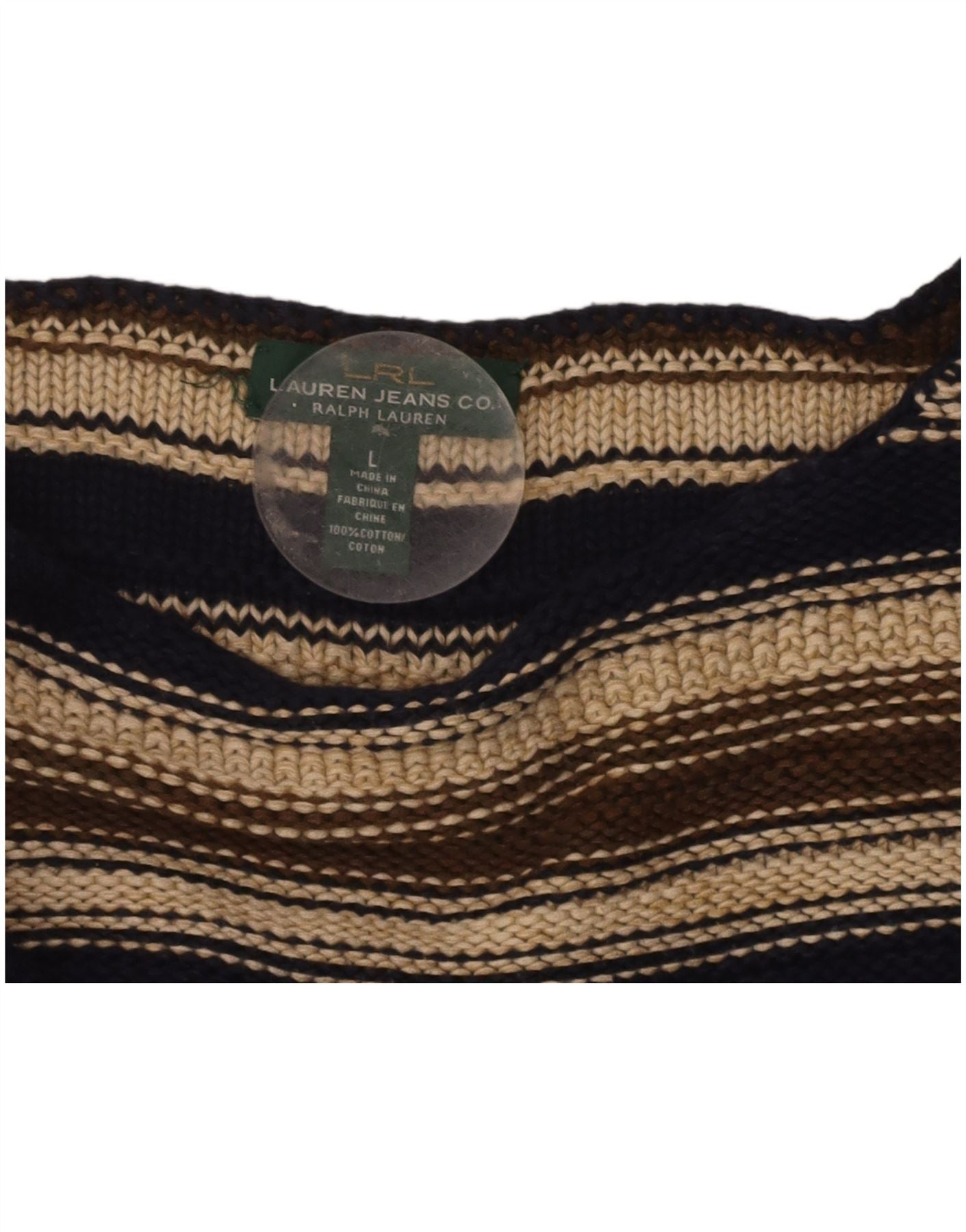 RALPH LAUREN Womens Boat Neck Jumper Sweater UK 16 Large Beige Striped