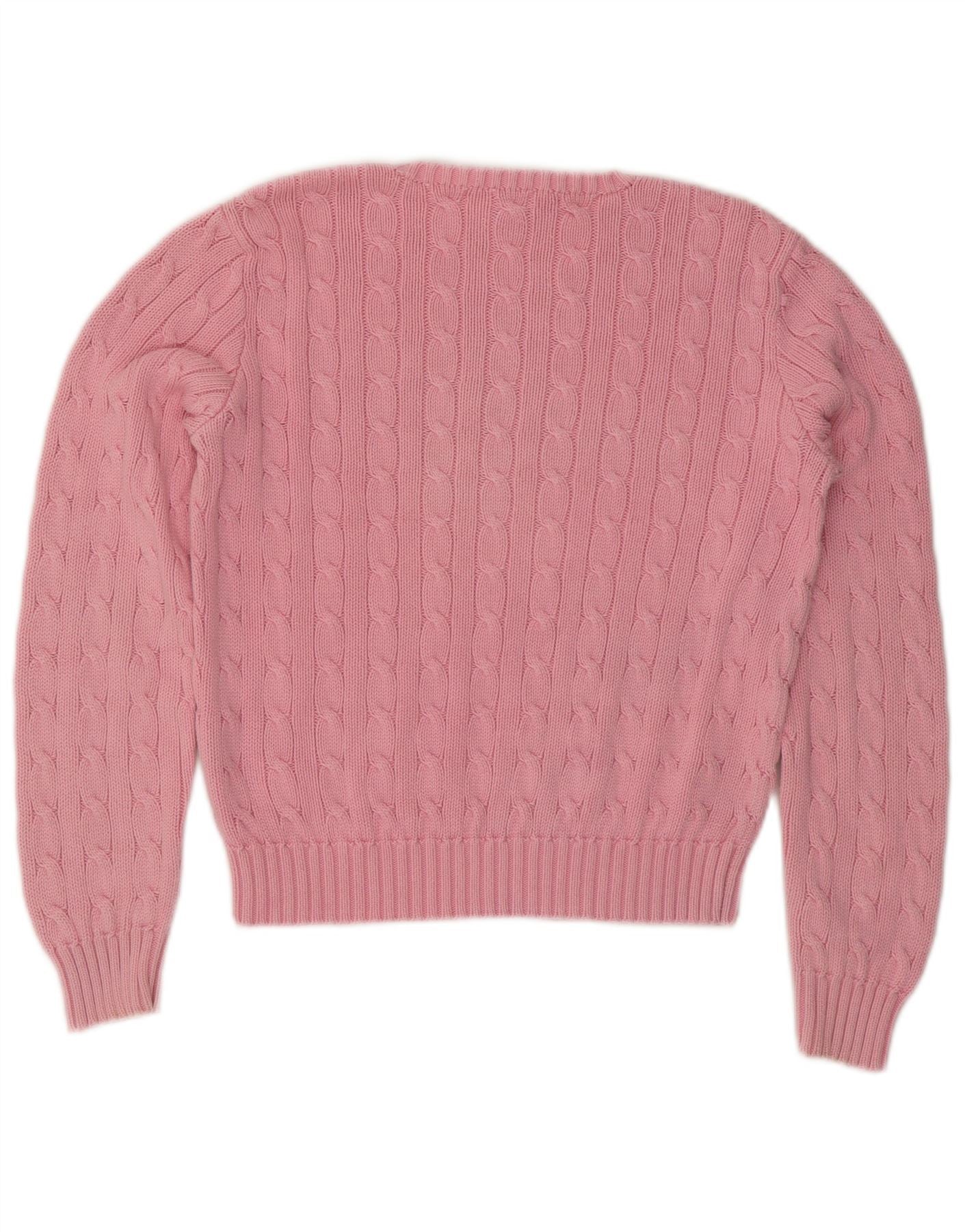 RALPH LAUREN Womens Crop Crew Neck Jumper Sweater UK 14 Large Pink