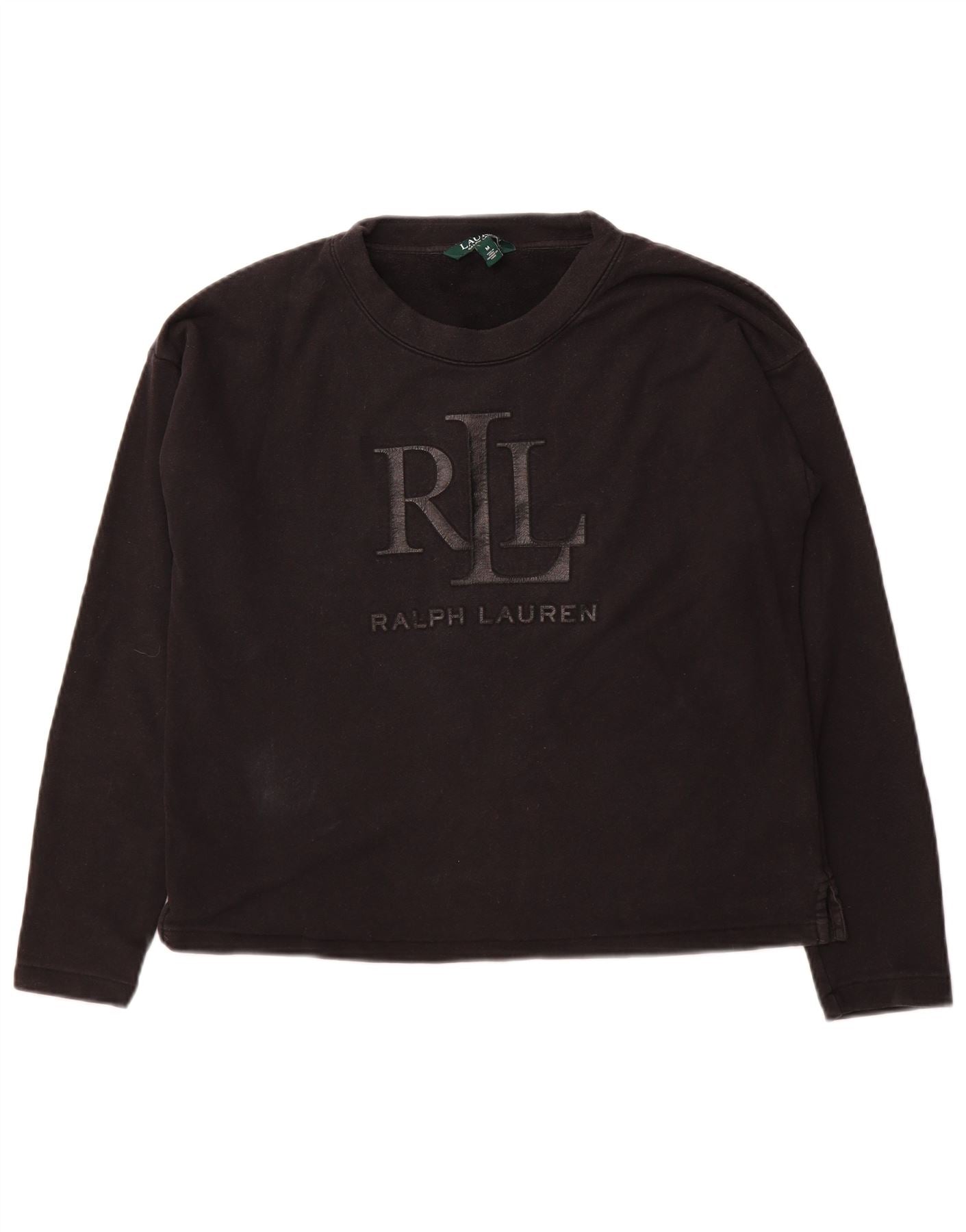 RALPH LAUREN Womens Graphic Oversized Sweatshirt Jumper UK 14 Medium Black