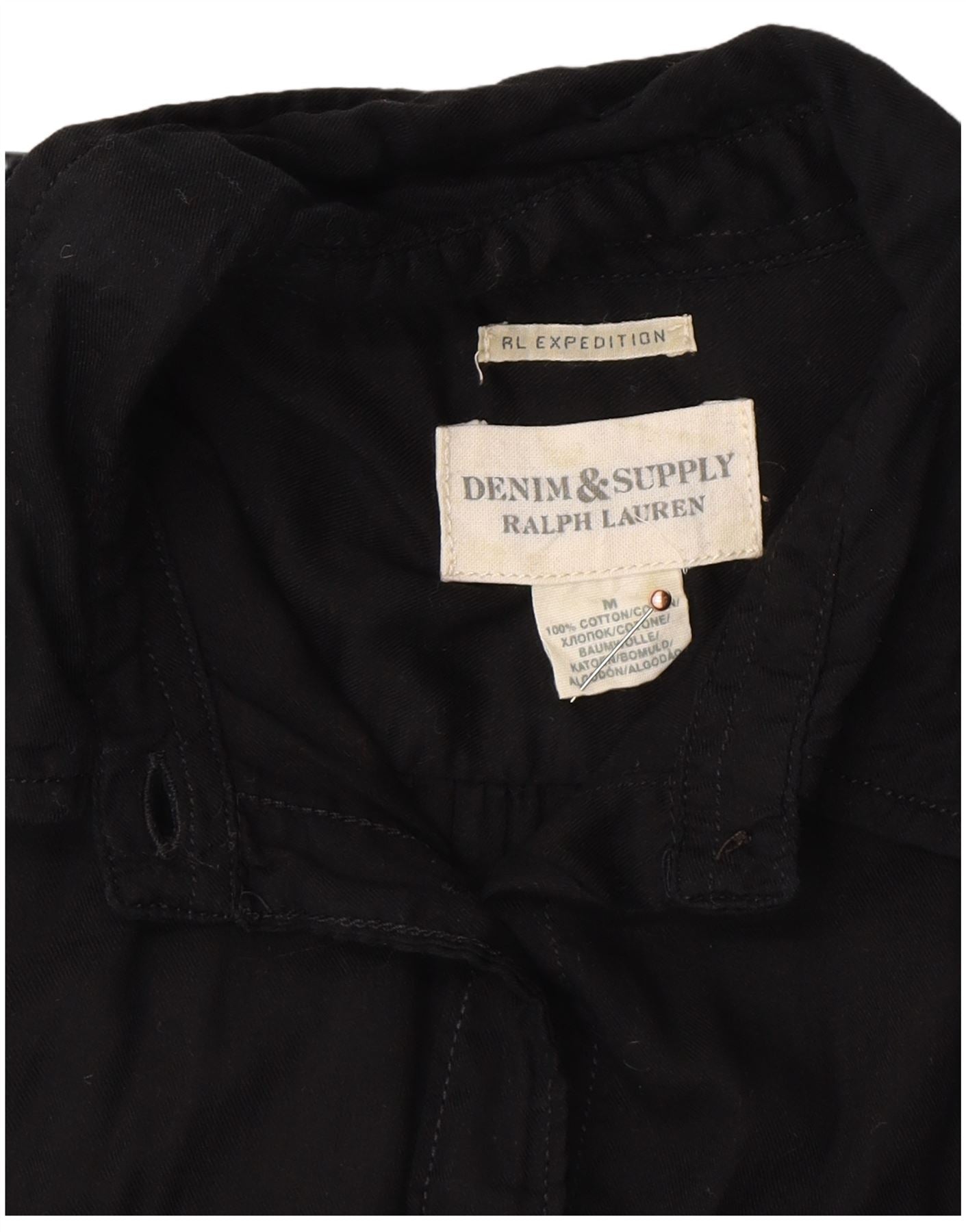 RALPH LAUREN Womens Military Denim Shirt UK 14 Medium Black Cotton