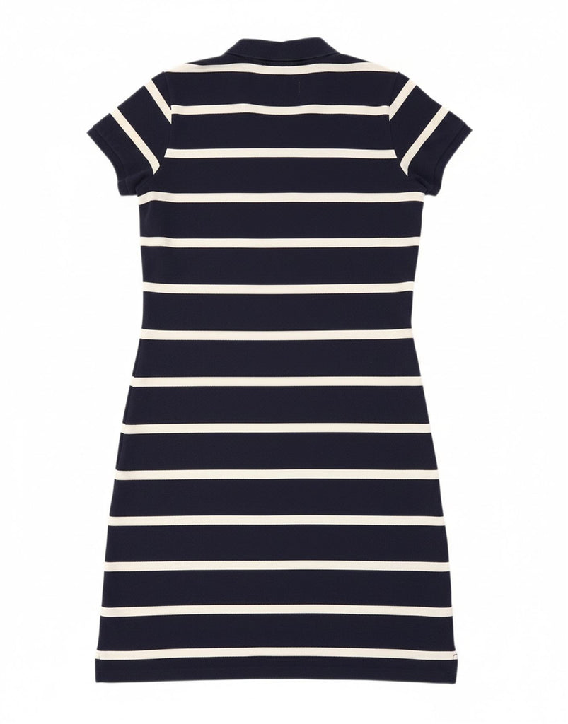 RALPH LAUREN Womens Polo Dress UK 14 Large Navy Blue Striped Cotton