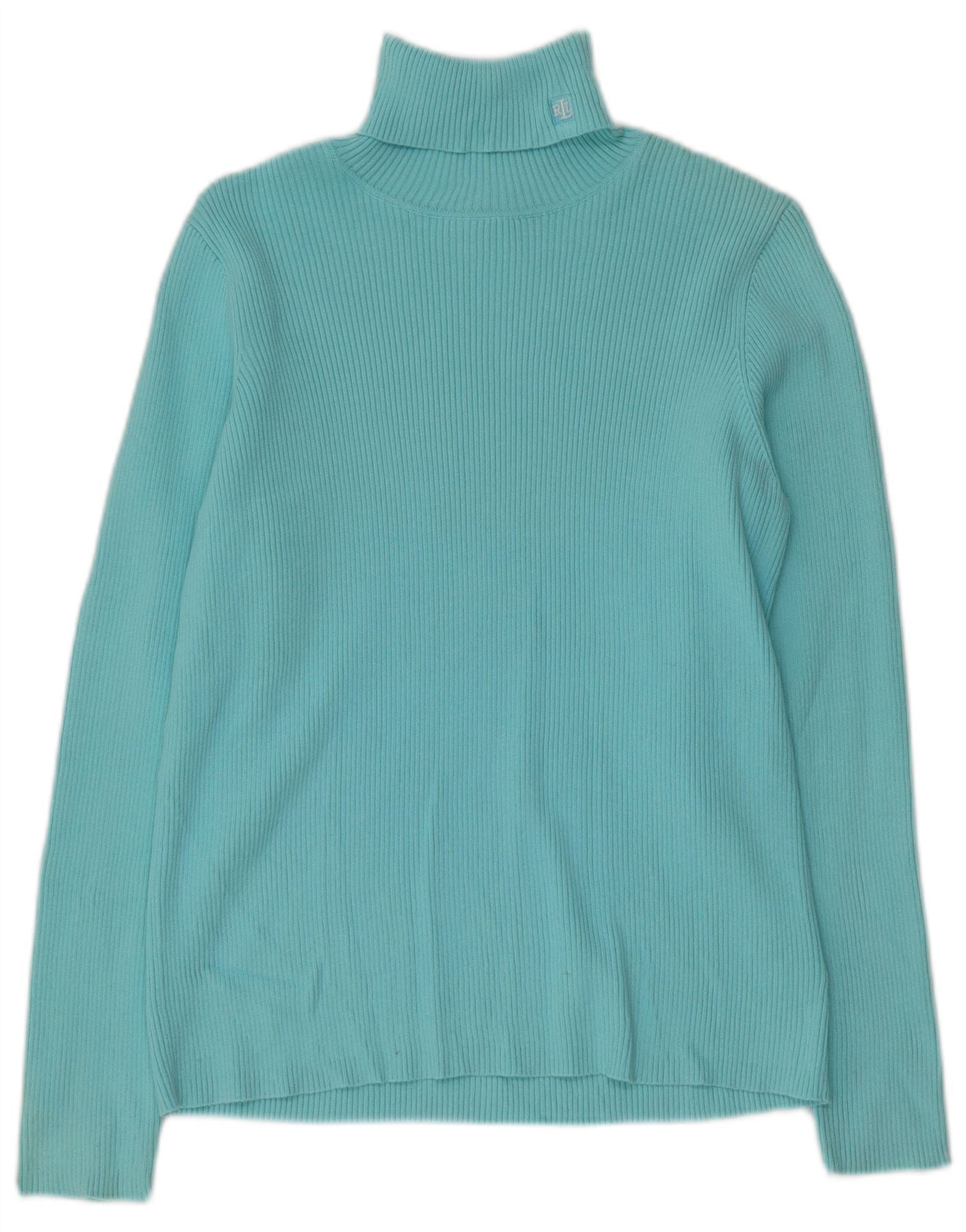 RALPH LAUREN Womens Roll Neck Jumper Sweater UK 14 Large Blue Cotton