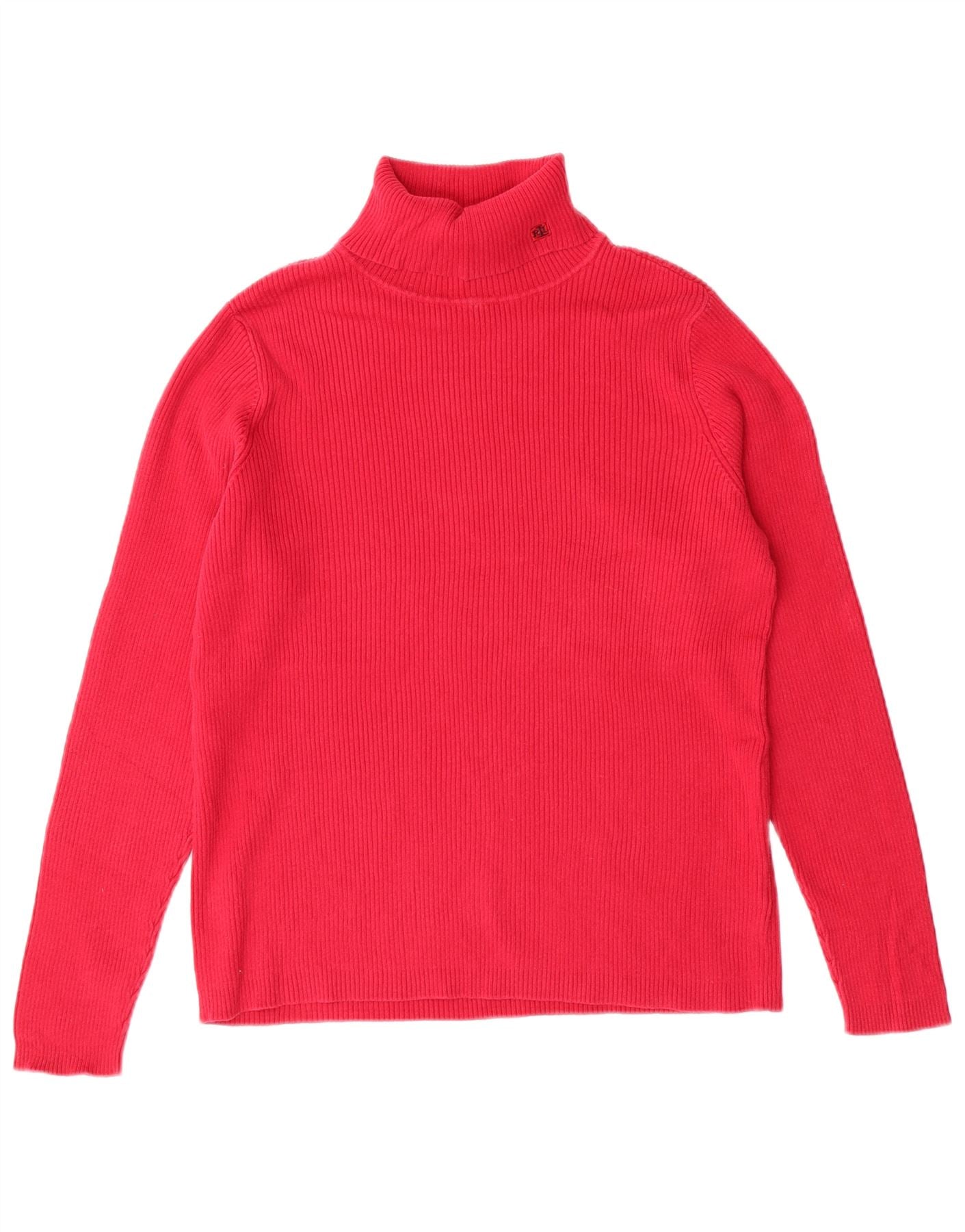 RALPH LAUREN Womens Roll Neck Jumper Sweater UK 16 Large Pink Cotton