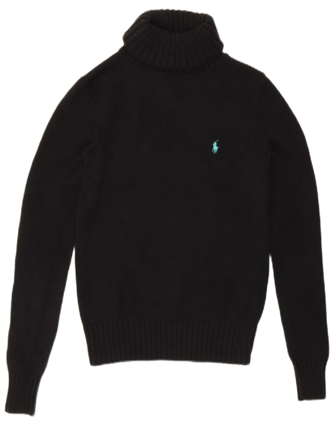 RALPH LAUREN Womens Roll Neck Jumper Sweater UK 8 Small Black Cotton