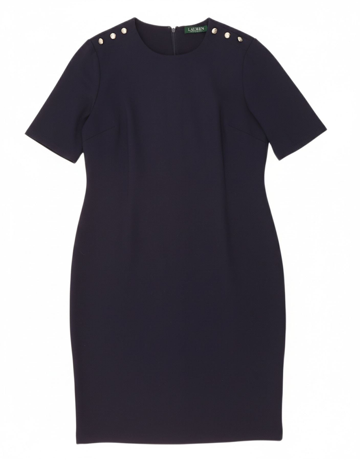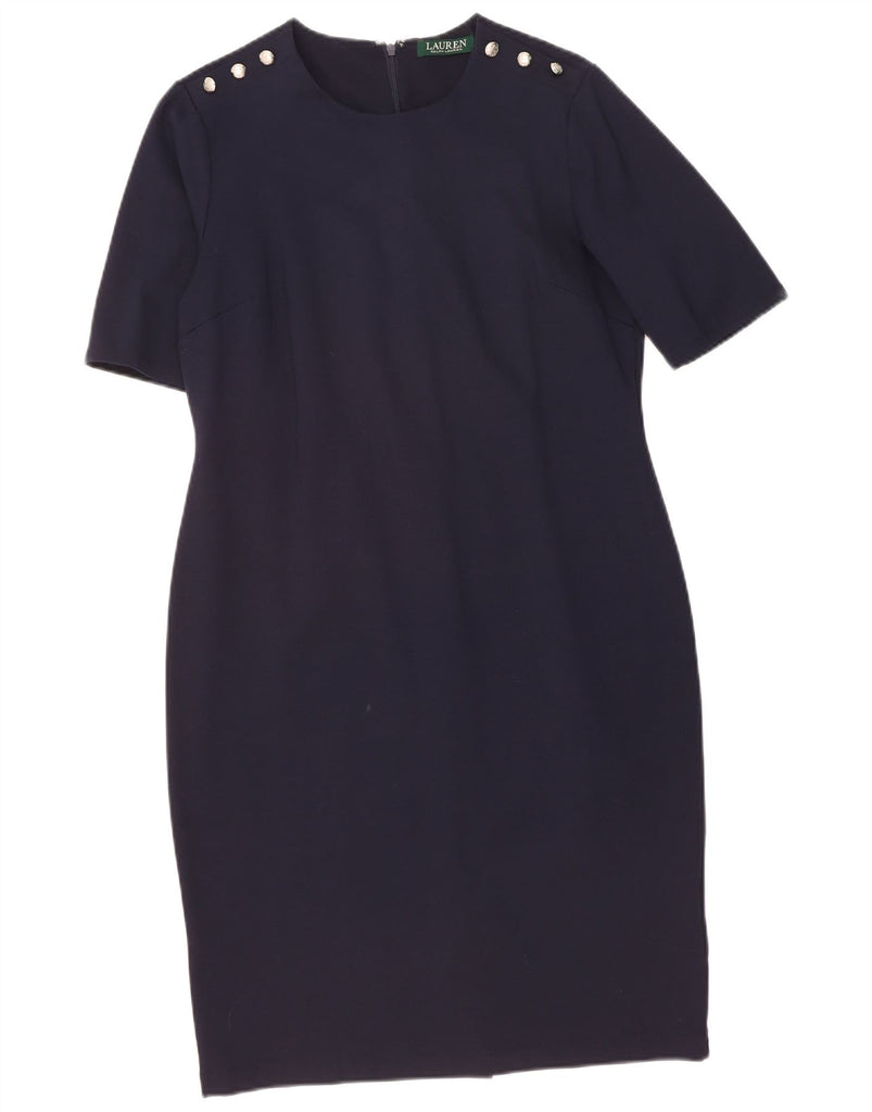 RALPH LAUREN Womens Sheath Dress UK 14 Large Navy Blue Viscose