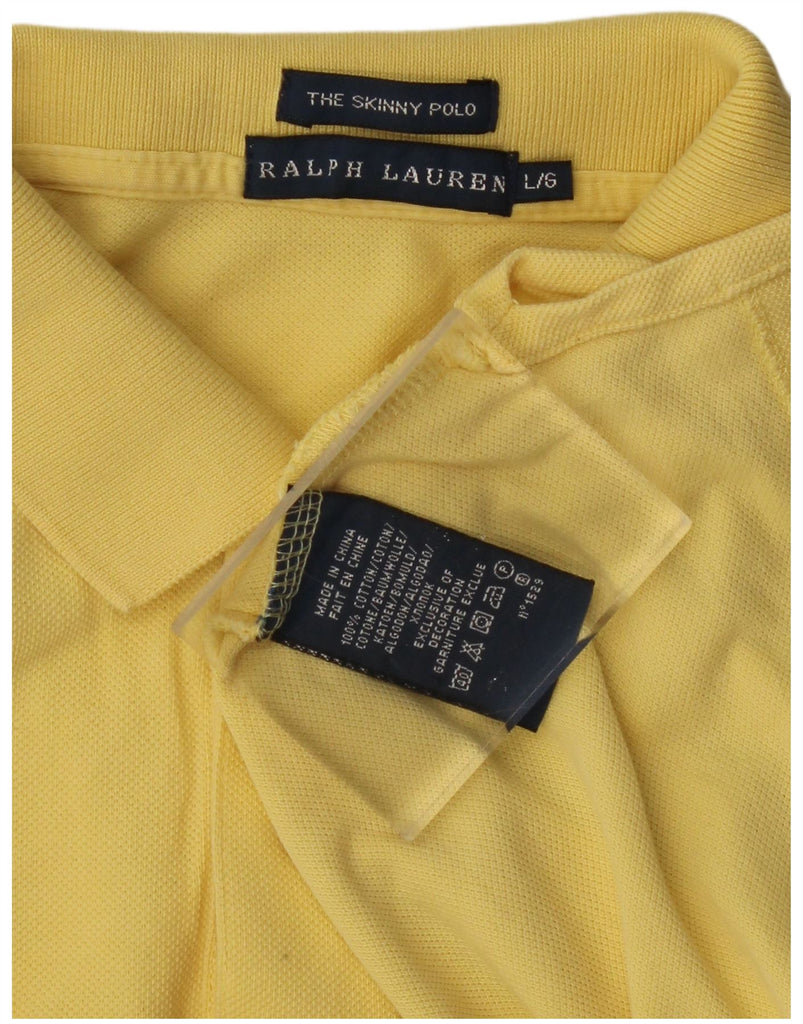 RALPH LAUREN Womens Skinny Polo Shirt UK 14 Large Yellow Cotton
